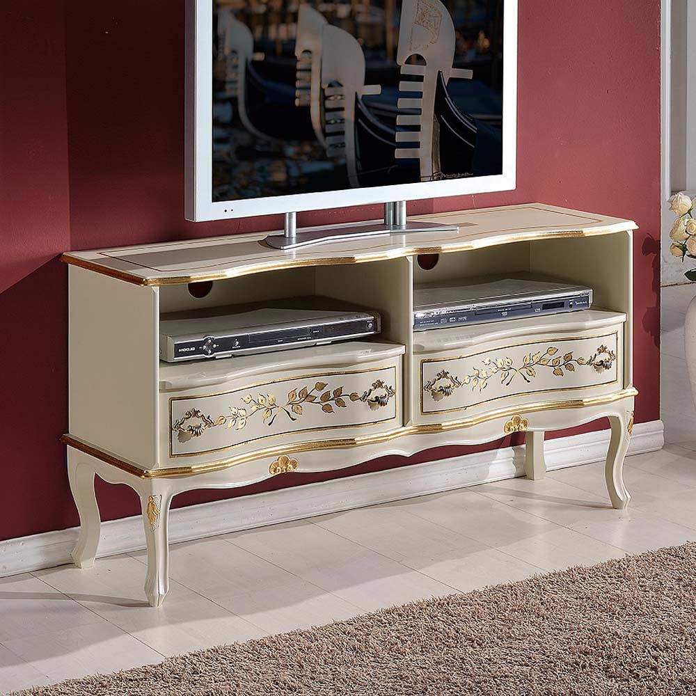 TV-Ständer aus Holz im klassischen Stil mit 2 Schubladen, hergestellt in Italien.