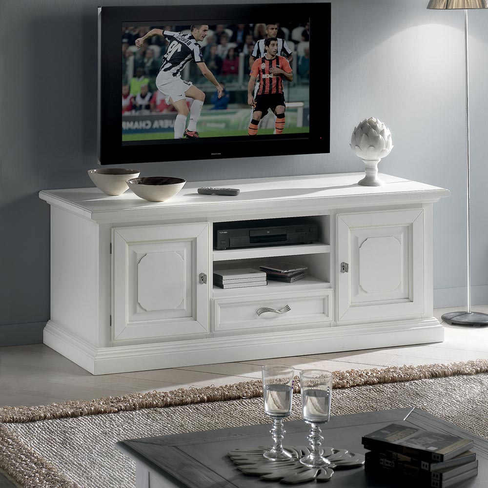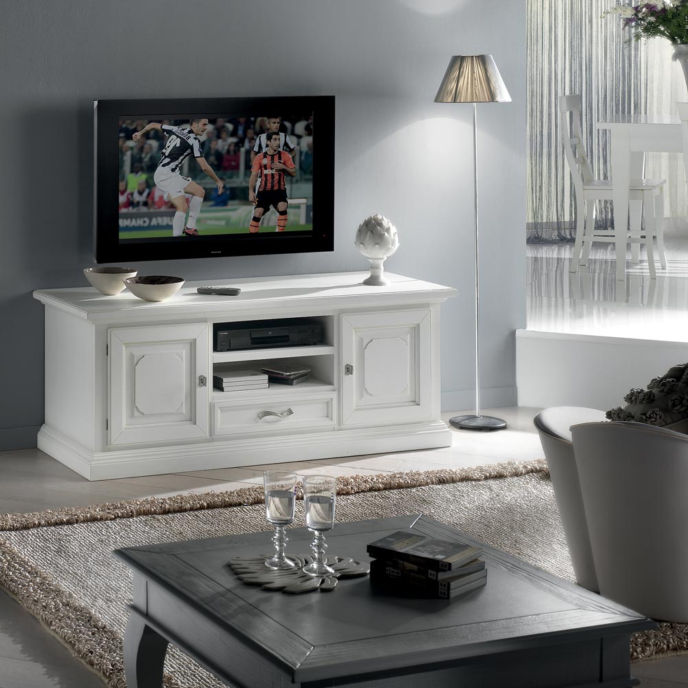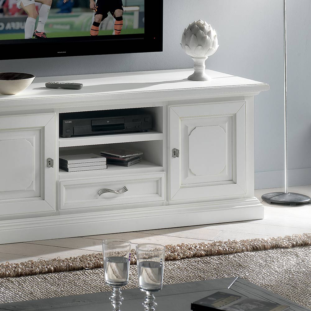 TV-Schrank mit 2 offenen Fächern und 2 weiß lackierten Türen, hergestellt in Italien – Atai