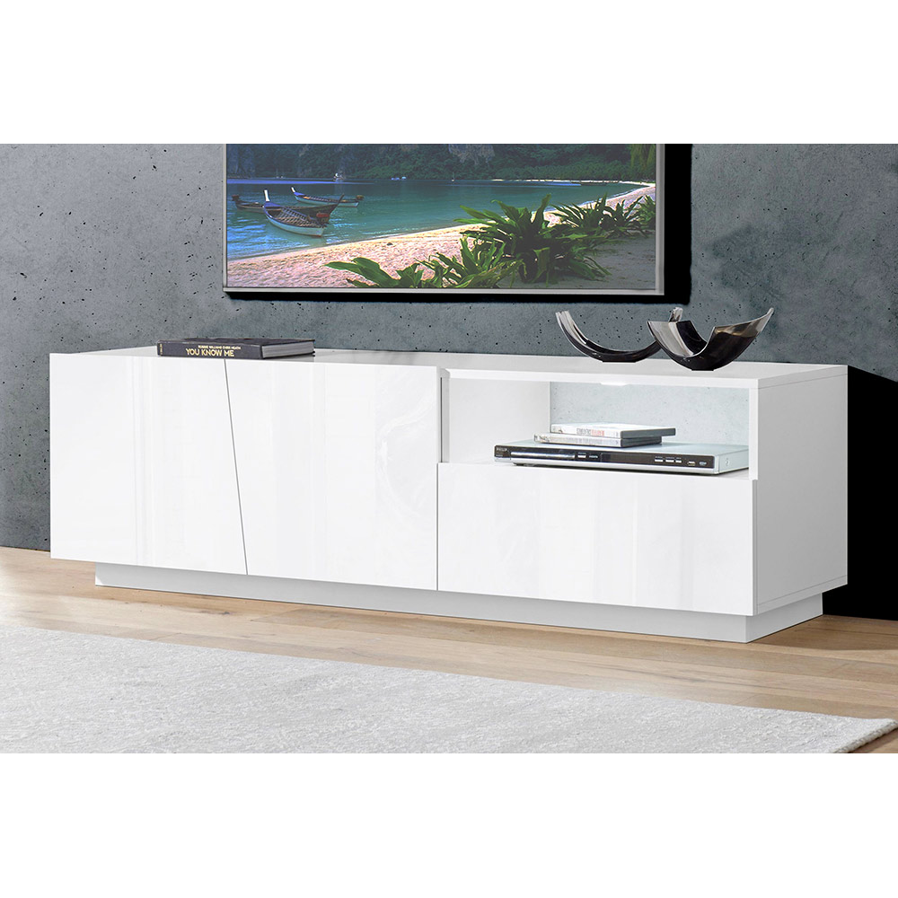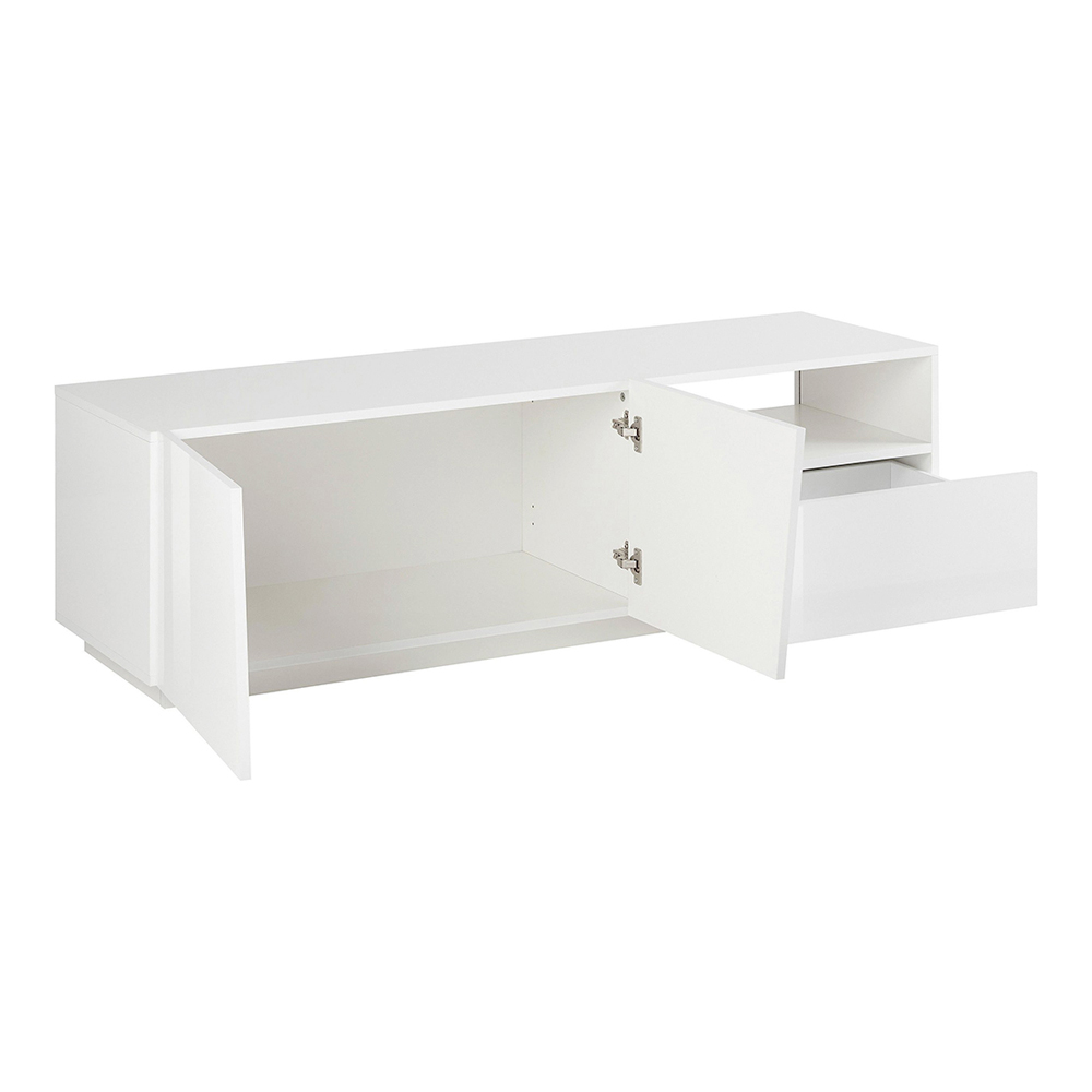 2 Flügeltüren, einer Schublade und einem offenen Fach , die viel Stauraum garantieren. Es besteht aus