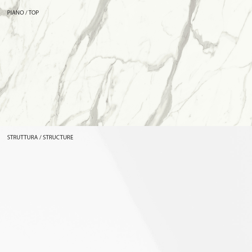 glänzend weiß lackiert , Platte mit Melaminbeschichtung in Calacatta-Marmor-Optik