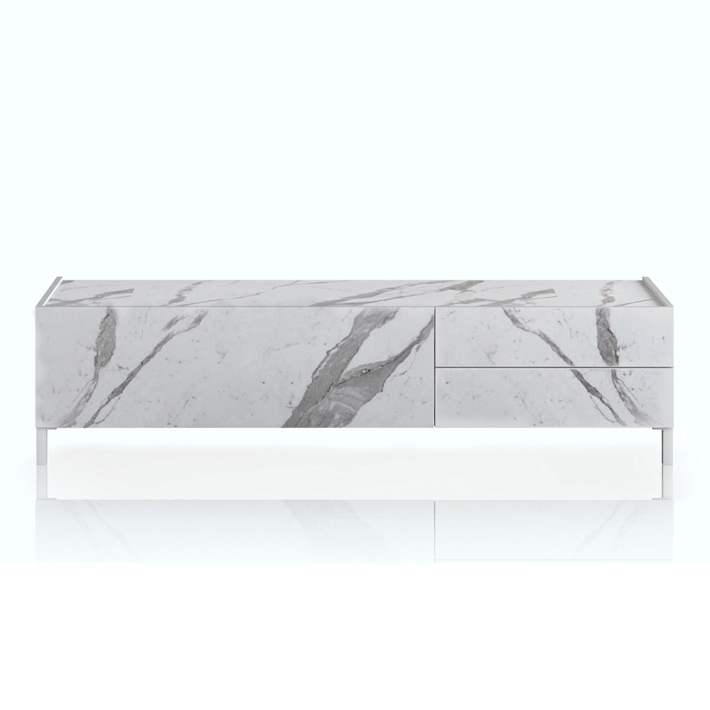 einer Dicke von 15/16 mm, vollständig mit Melamin mit mattem Calacatta-Weiß-Marmor-Finish überzogen , mit