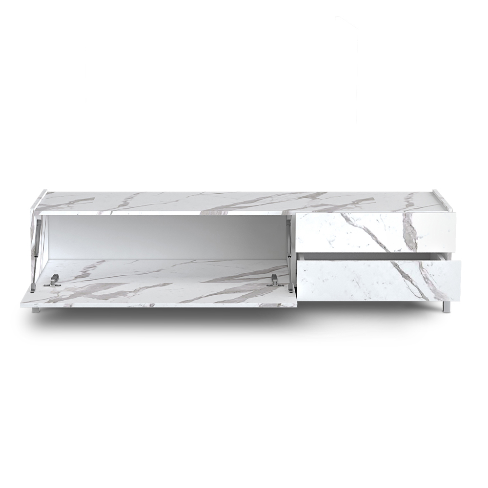 TV-Ständer aus Holz mit 1 Falttür und 2 Schubladen