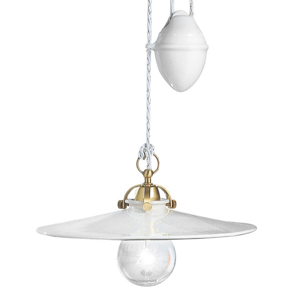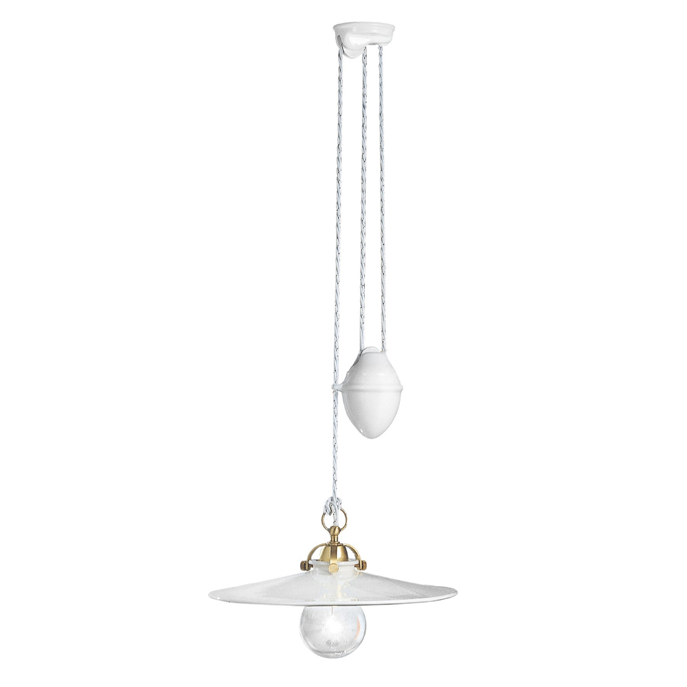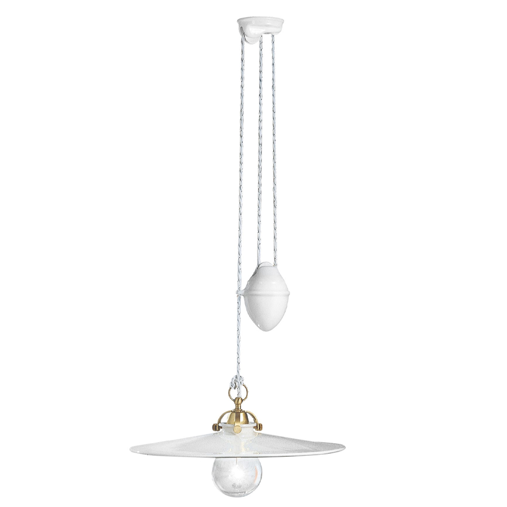 Auf- und abgehängte Hängelampe aus Eisen und glänzender Keramik, Vintage 2 Größen, hergestellt in Italien von Ferroluce.