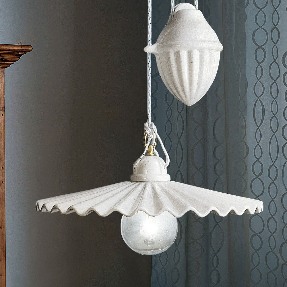Up-and-Down-Lampe in glänzendem Keramik-Plissee-Design, hergestellt in Italien von Ferroluce.