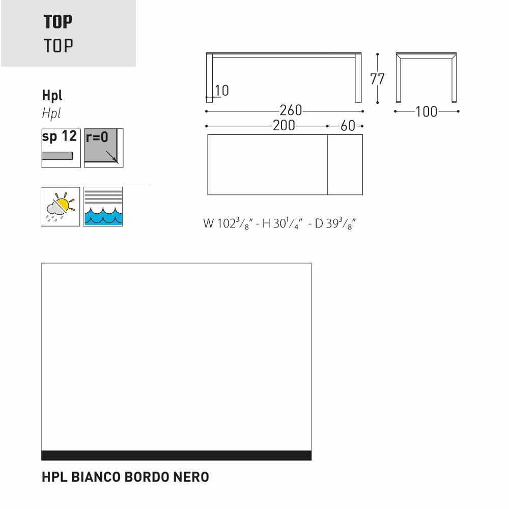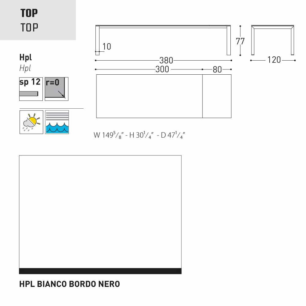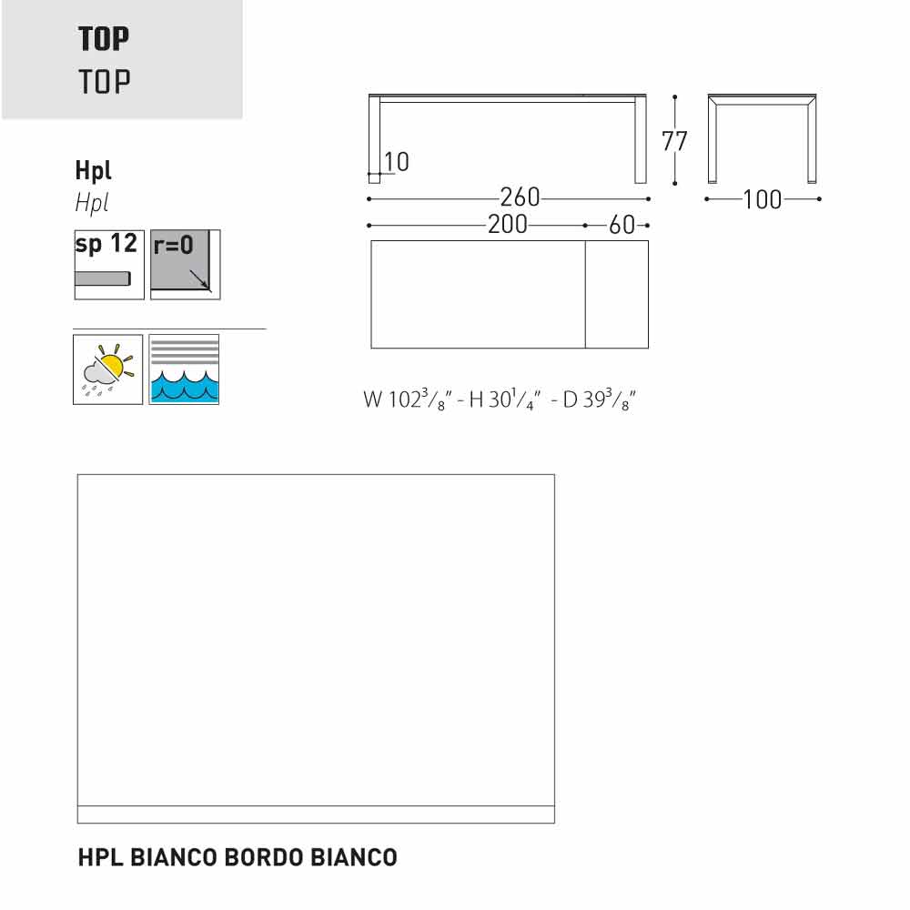 Dolmen ist ein ausziehbarer Gartentisch mit einer pulverbeschichteter Aluminiumstruktur in grau oder weiss lackiert; mit einer Tischplatte aus HPL ( Dicke 1,2) finish: seidengrau - Tischkante schwarz, weiss - Tischkante schwarz, anthrazit - Tischkante schwarz, weiss - Tischkante weiss, Zementfarben - Tischkante braun, Bedonia Stein - Tischkante braun, Cortenfarben - Tischkante braun.