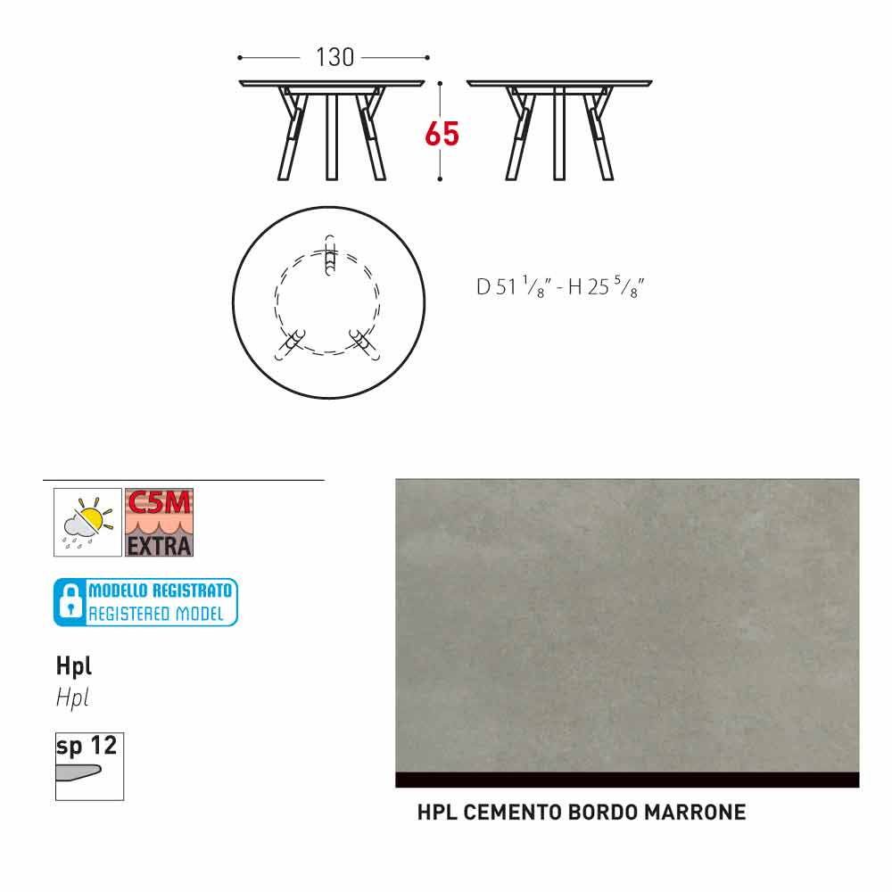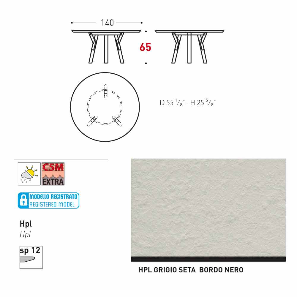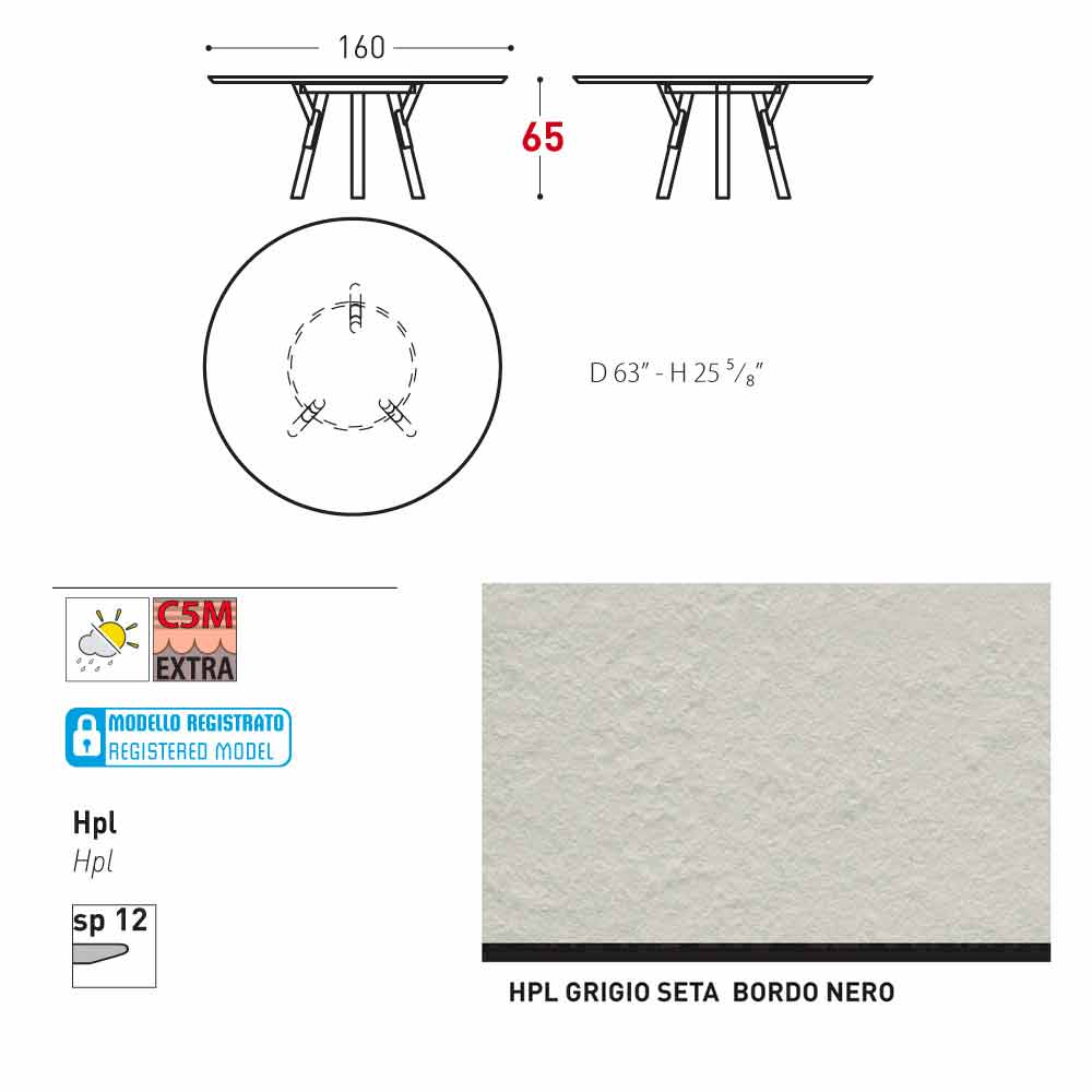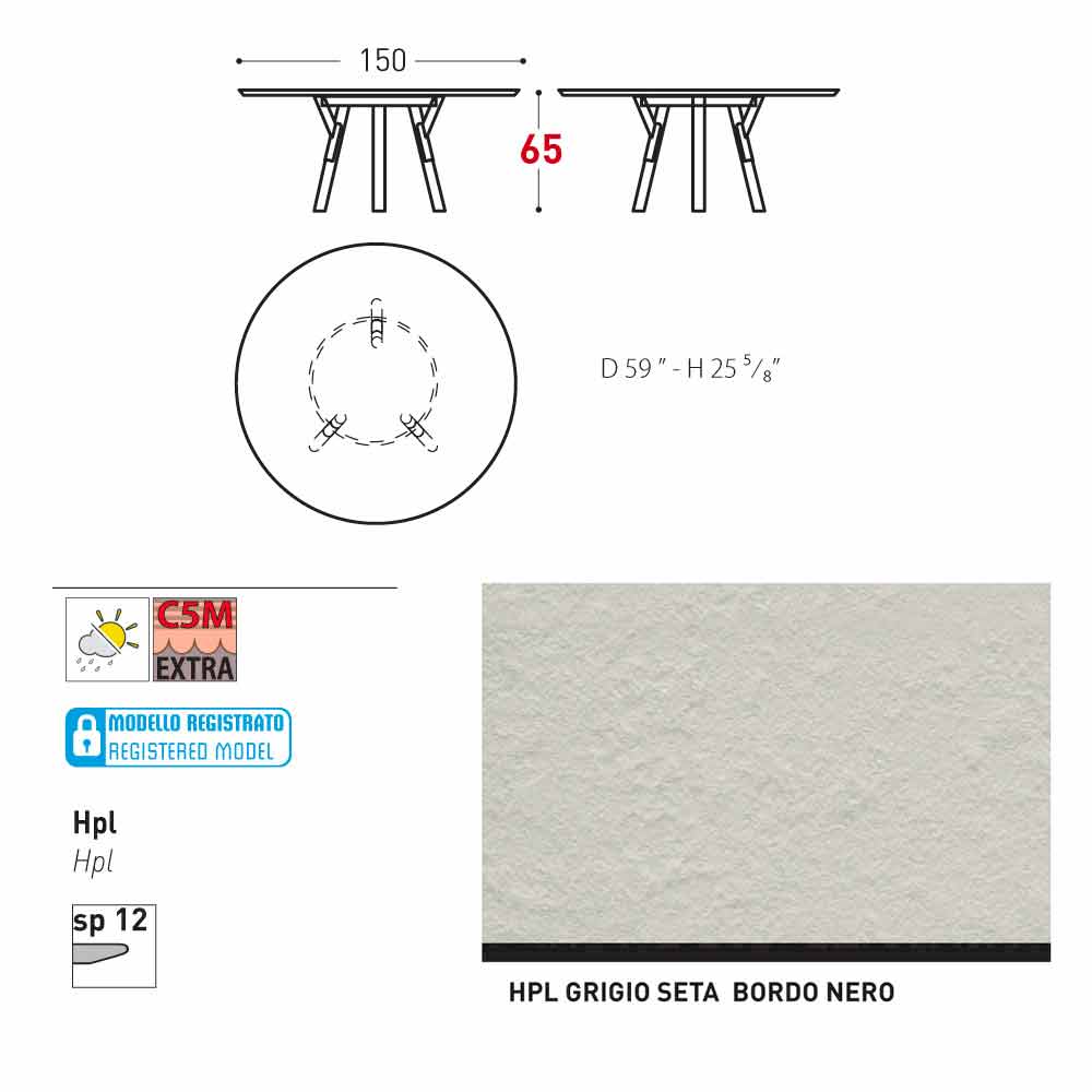 HPL Charaktereigenschaften: HPL heißt High Pressure Laminate. Diese Laminate bestehen aus mehreren Schichten Papier 70% mit einer 30% igen Harz Beschichtung, die unter hohem Druck zusammengefügt wurden.  HPL-Platte (auf Basis thermohärtender Harze, homogen verstärkt mit Holzfasern, unter hohem Druck und Temperatur verpresst, der Pressvorgang dauert ca. 40 - 45 min). Das Ergebnis ist eine kompakte feste Tischplatte resistenter als je zuvor, die sowohl im Innenbereich, im Außenberich als auch im Marinebereich anewendet werden kann.