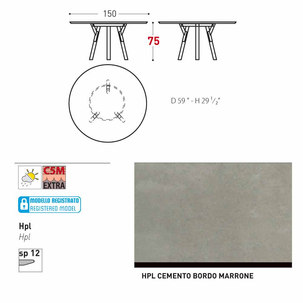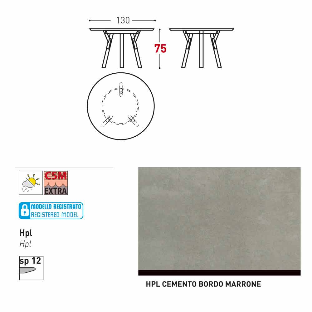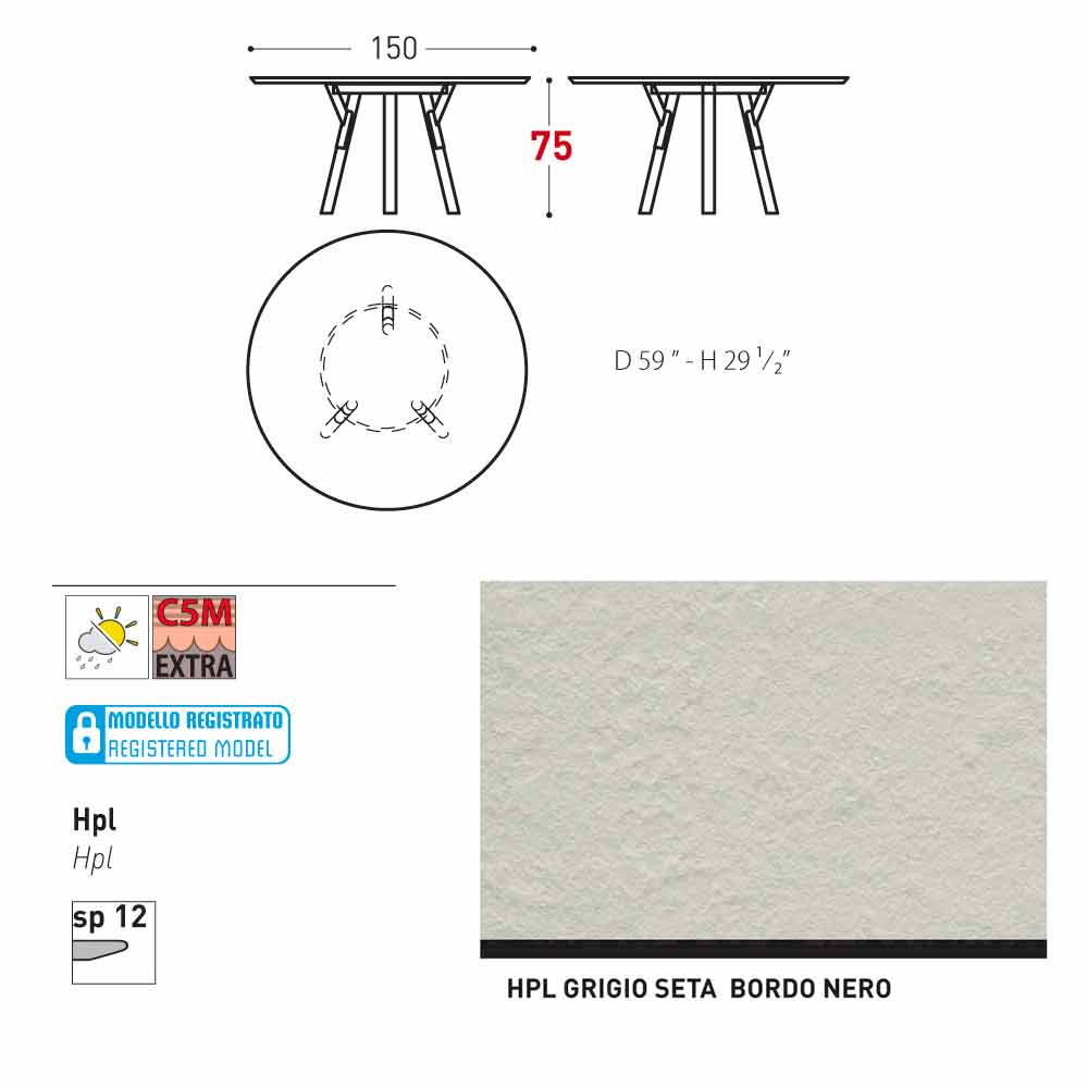 HPL Charaktereigenschaften: HPL heißt High Pressure Laminate. Diese Laminate bestehen aus mehreren Schichten Papier 70% mit einer 30% igen Harz Beschichtung, die unter hohem Druck zusammengefügt wurden.  HPL-Platte (auf Basis thermohärtender Harze, homogen verstärkt mit Holzfasern, unter hohem Druck und Temperatur verpresst, der Pressvorgang dauert ca. 40 - 45 min). Das Ergebnis ist eine kompakte feste Tischplatte resistenter als je zuvor, die sowohl im Innenbereich, im Außenberich als auch im Marinebereich anewendet werden kann.