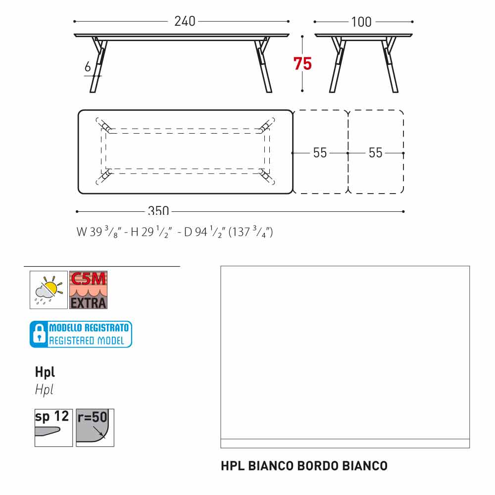 • 100x240/350x75cm - 2 Platten ausziehbar bis jeweils 55 cm