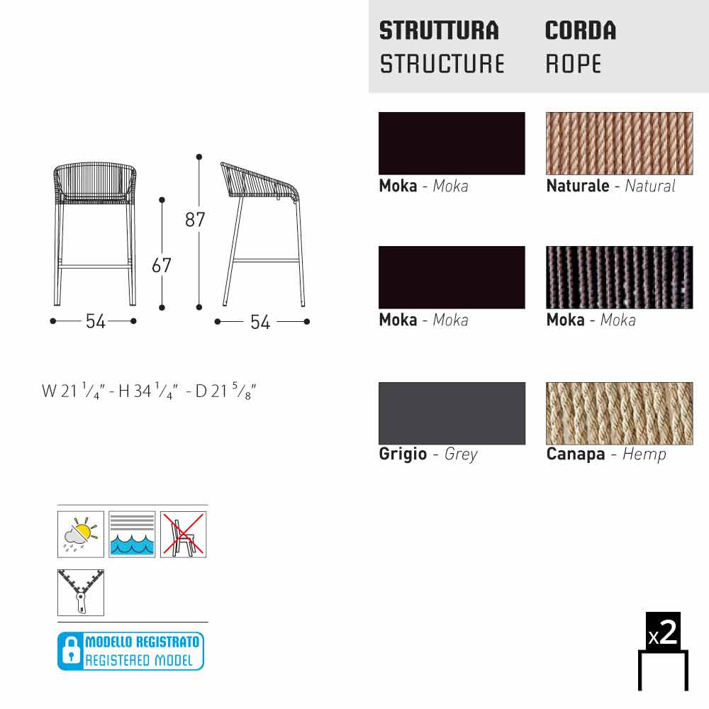 Varaschin Chricket Outdoor Sitzhocker handgeflechtet, 2 Teile - HOHE VERSION