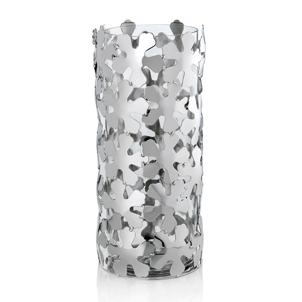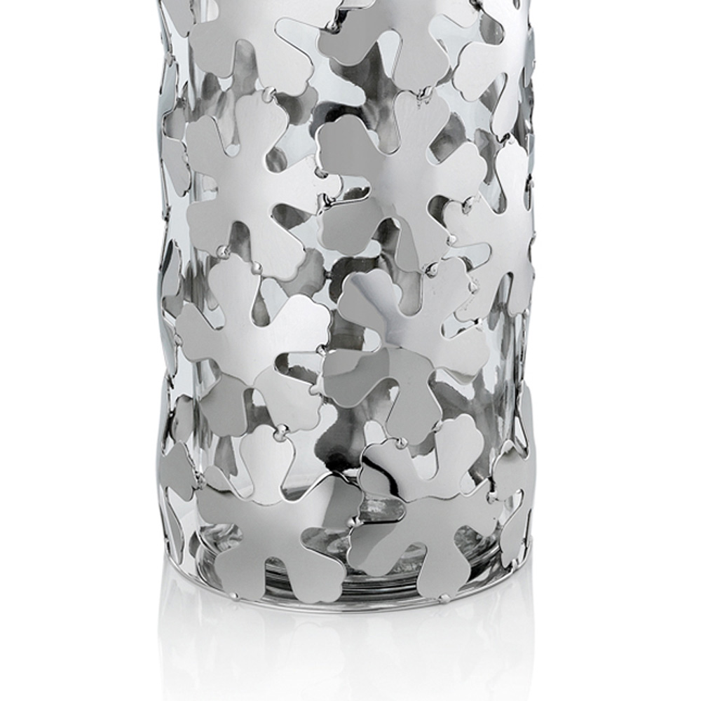 Sein zylindrisches Design besteht aus abnehmbarem Glas und silbernem Metall mit einer Blumenform, die Luxus in einer naturalistischen und nicht trivialen Atmosphäre verleiht.