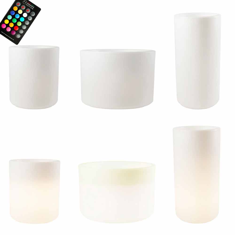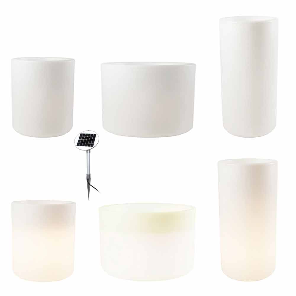 Leuchtende Vase in modernem und vielseitigem Design mit LED oder Solar in verschiedenen Größen für drinnen oder draußen.