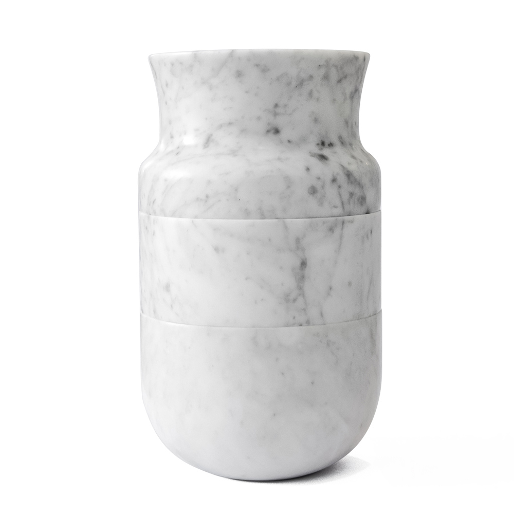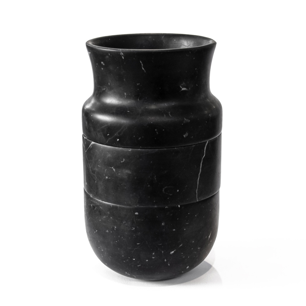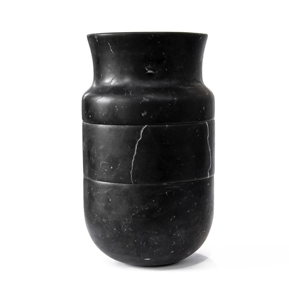 Dekorative Vase in 3 Designteilen aus weißem Carrara-Marmor oder schwarzem Marquinia made in Italy.