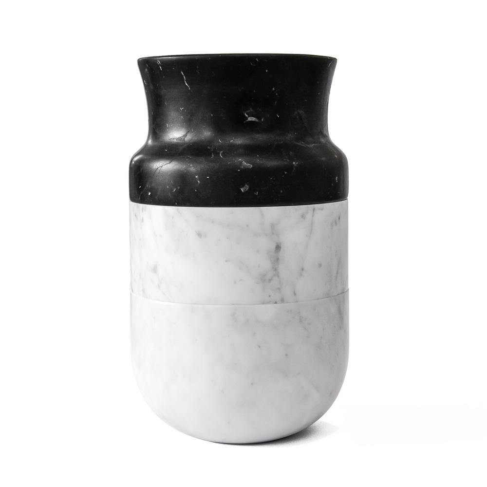 Vasendekor aus weißem Carrara-Marmor und schwarzem Marquinia-Design - Calar