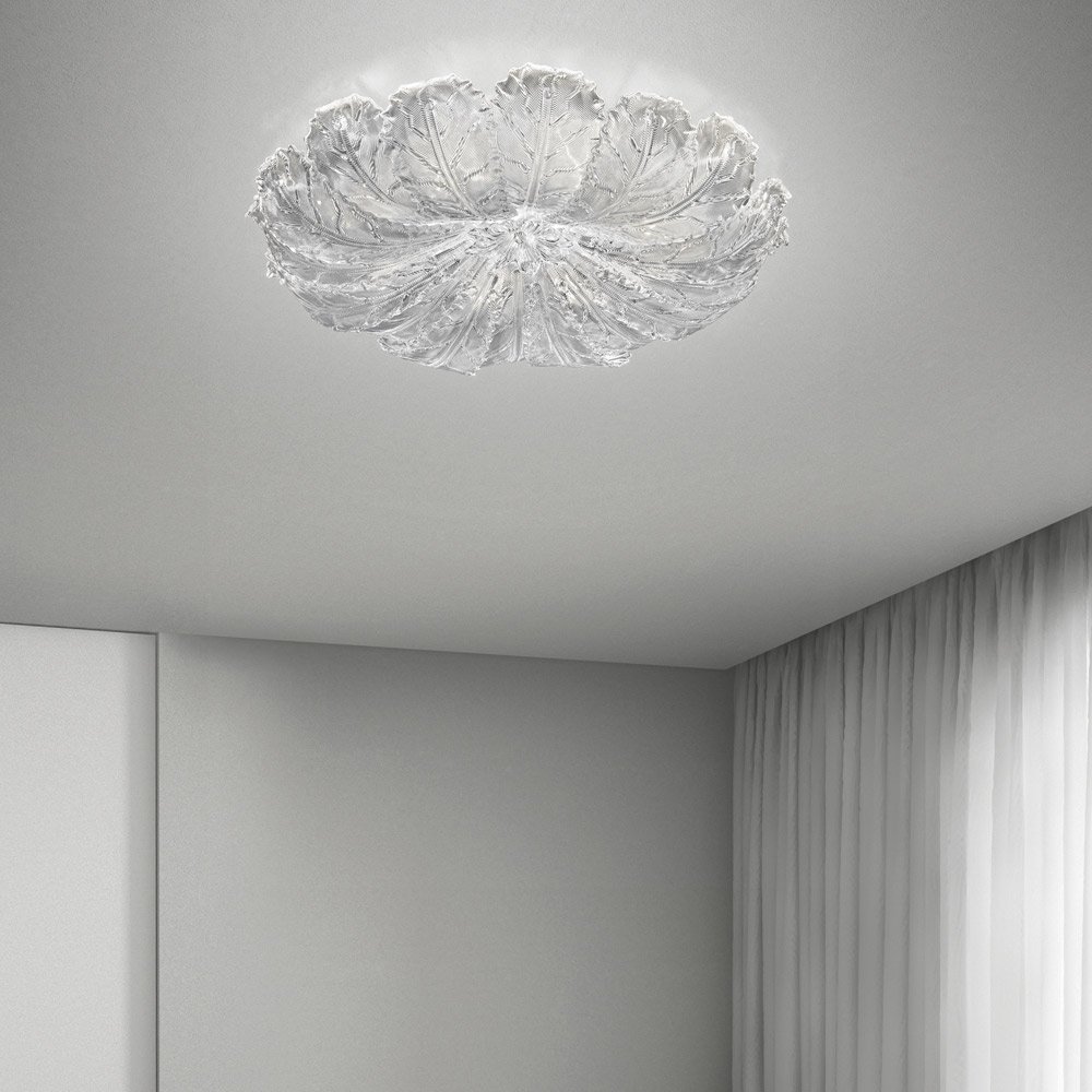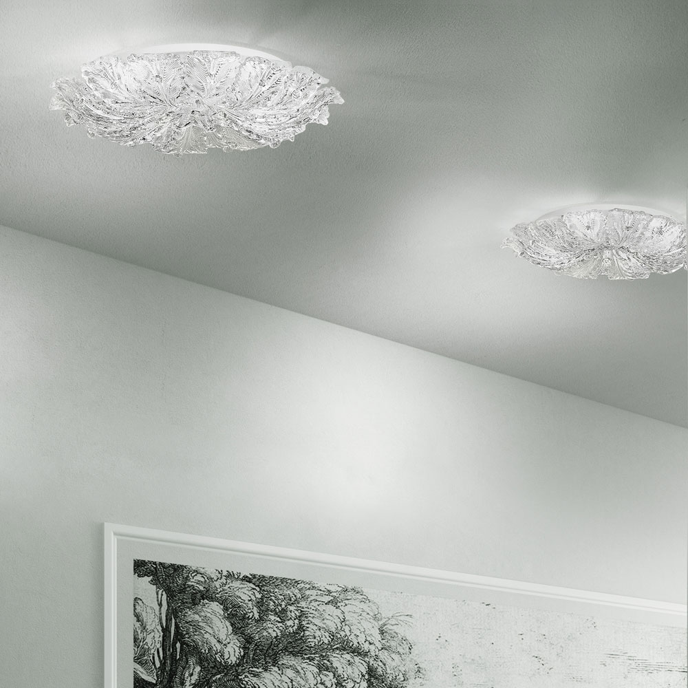 Handgefertigte Deckenlampe aus venezianischem Glas und Metall Made in Italy.
