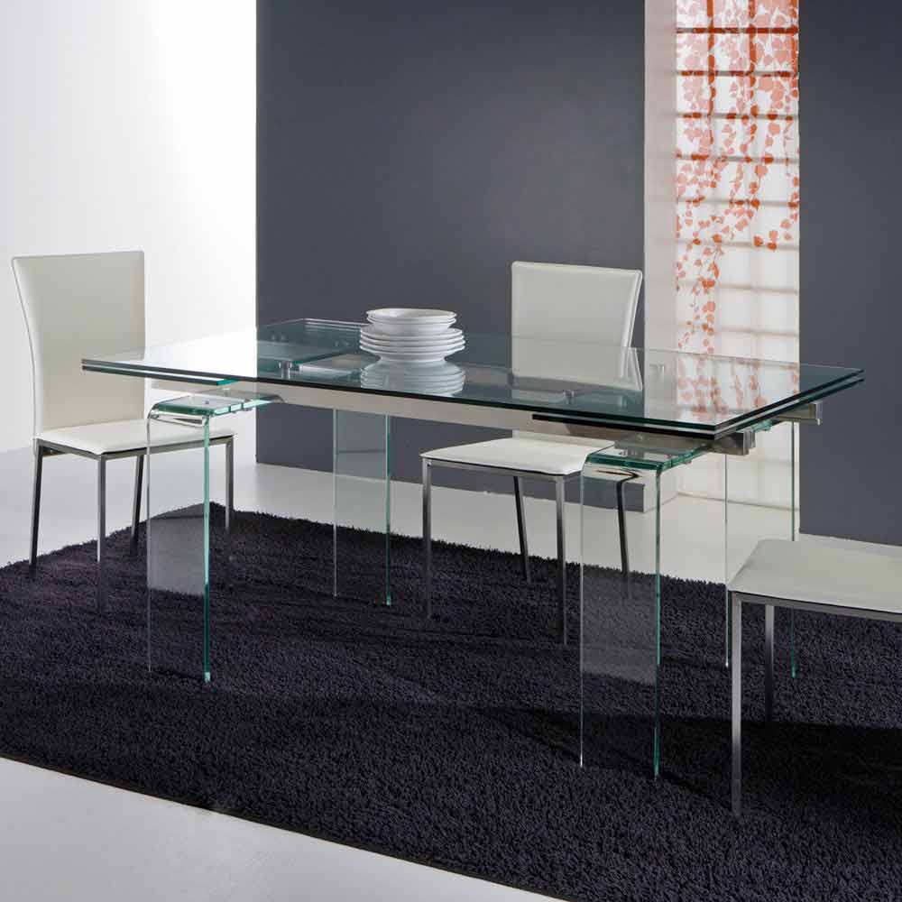 Verlängerbarer Tisch aus Glas durchsichtig in modernem Design Atlanta
