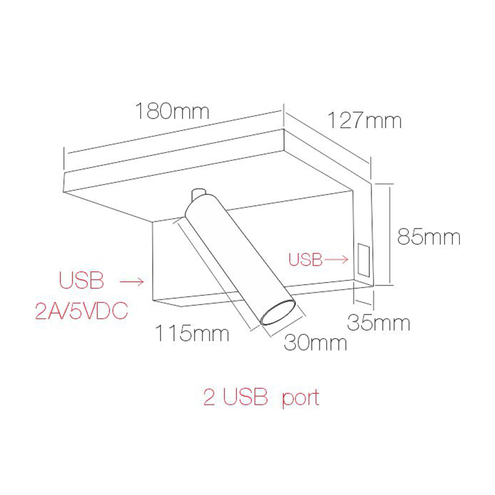 perfekte direkte Beleuchtung für diejenigen, die sich dank des innovativen LED in drei verschiedenen Positionen einstellbar und sorgt gleichzeitig für einen bequemen Anschluss, um Ihre elektronischen Geräte praktisch und übersichtlich über die beiden USB-Anschlüsse aufzuladen.