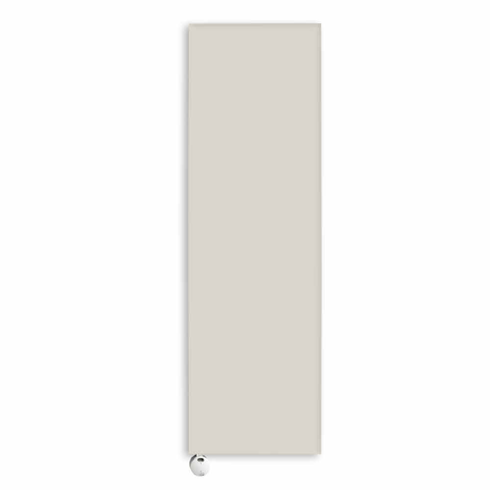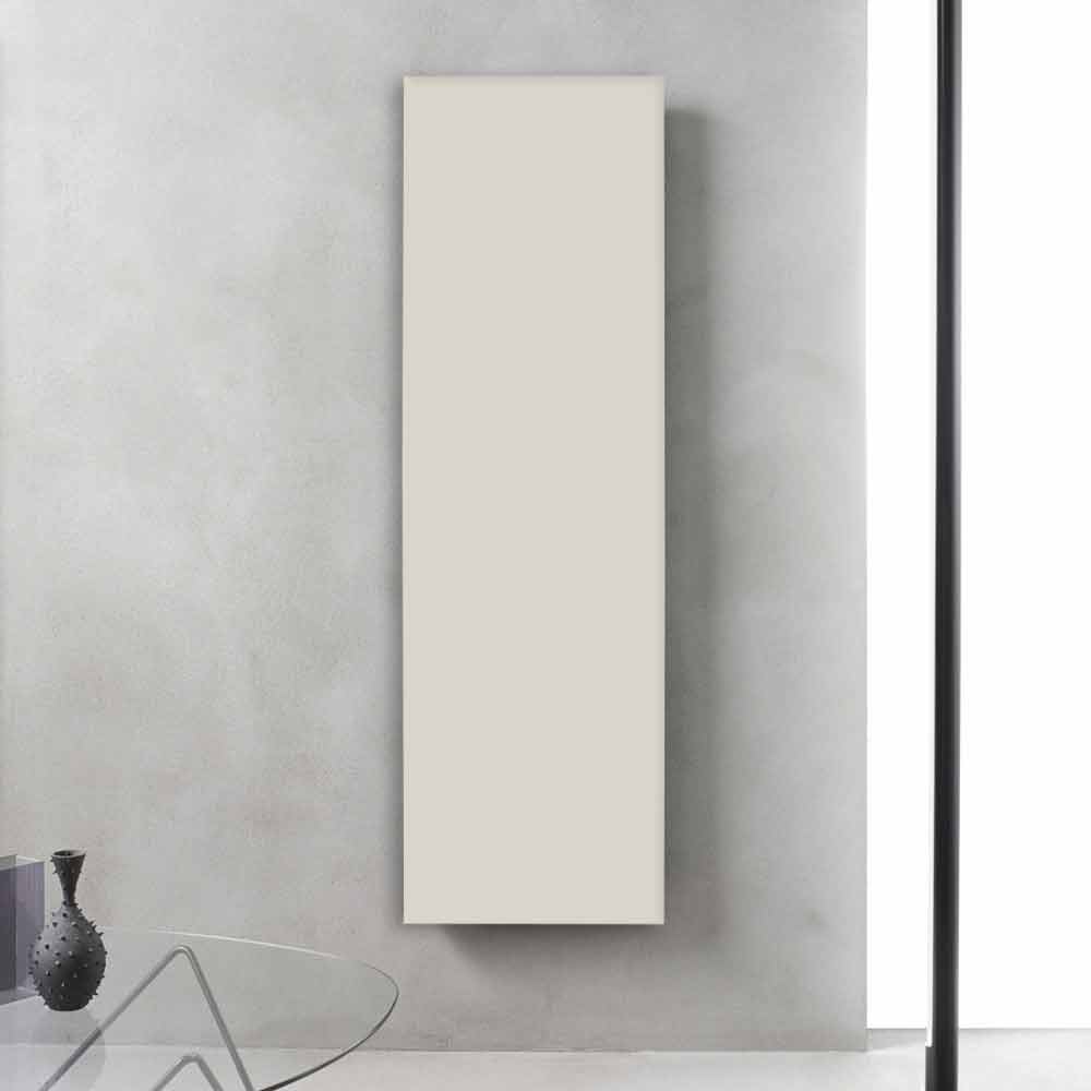 Vertikaler elektrischer Wandkühler mit modernem Design aus grauweißem Stahl, hergestellt in Italien.