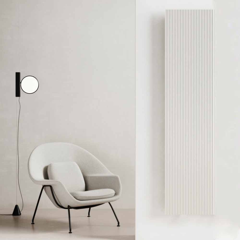 elektrische Heizkörper verfügt über ein modernes Design, bei dem der eigentliche Protagonist die Architektur ist, die sich durch Linien mit wechselndem Rhythmus auszeichnet, die Lichtspiele und Dialoge mit dem umgebenden Raum erzeugen.