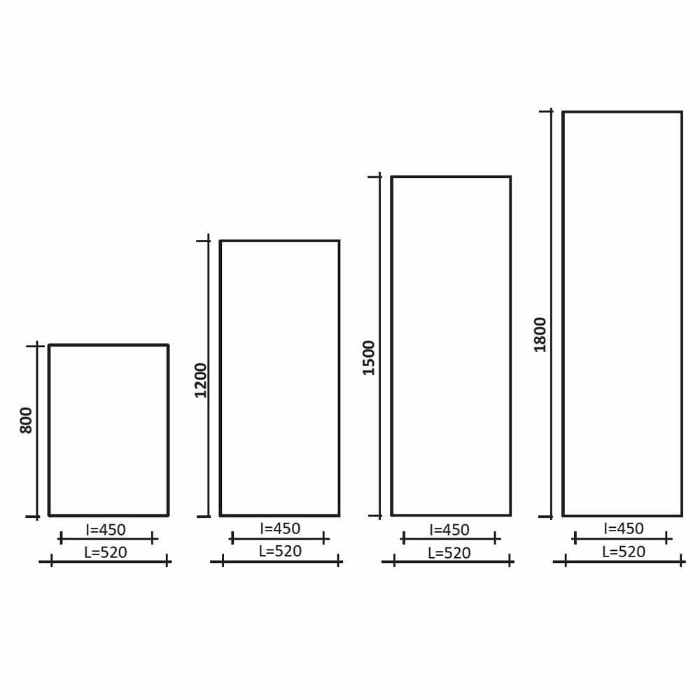 - H 1800 x L 520 x Inter. 450 x P 65 mm x Ausgang w (Δt50 °) 868; Ausbeute w (Δt30 °) 445; Ausbeute w (Δt26 °) 375