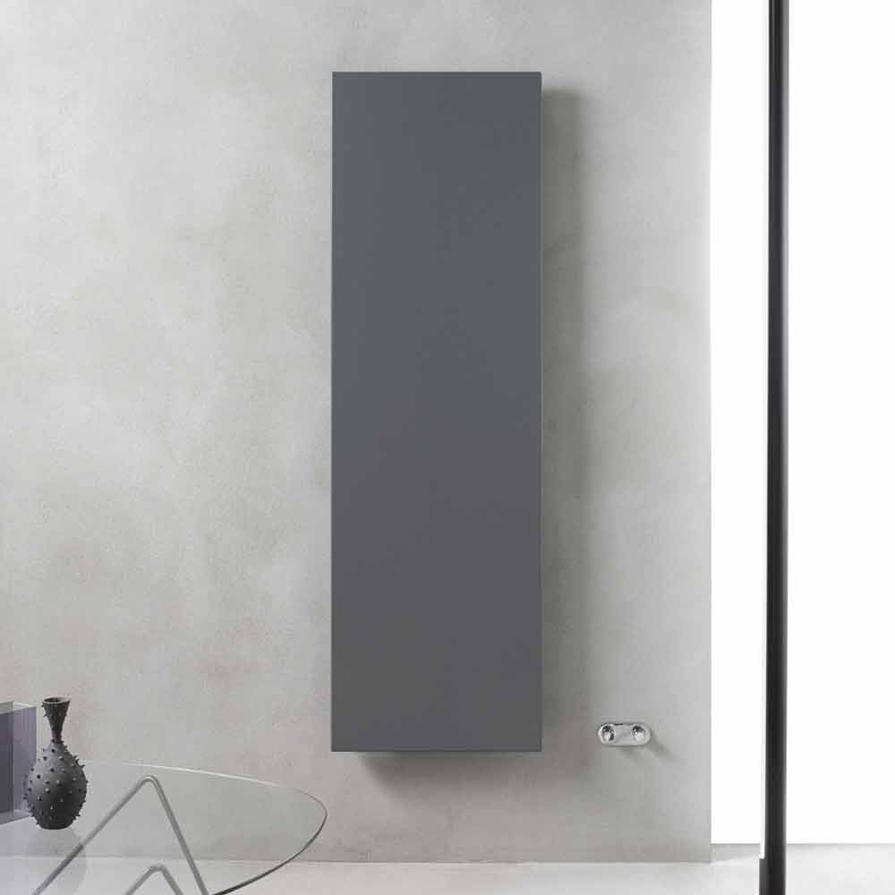 Vertikaler Wandkühler mit modernem Design aus schiefergrauem Stahl, hergestellt in Italien.