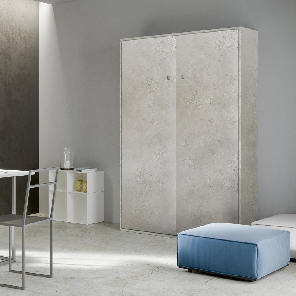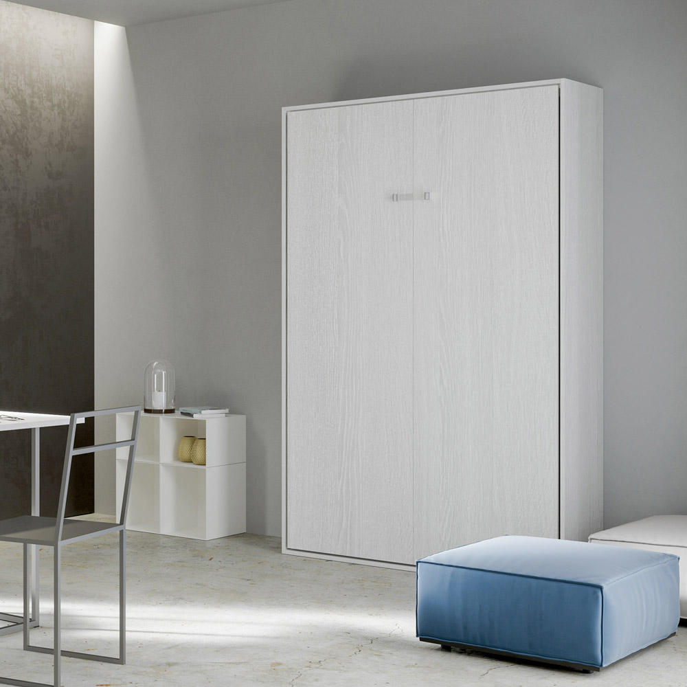 Der Bettrahmen besteht aus 18 mm dicken Melamin-Spanplatten und gewährleistet so Widerstandsfähigkeit und Langlebigkeit. Der Öffnungsmechanismus ist sanft und sicher und verwandelt die Wand mit einer einfachen Geste in ein bequemes Bett.