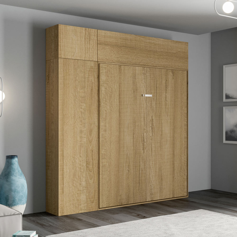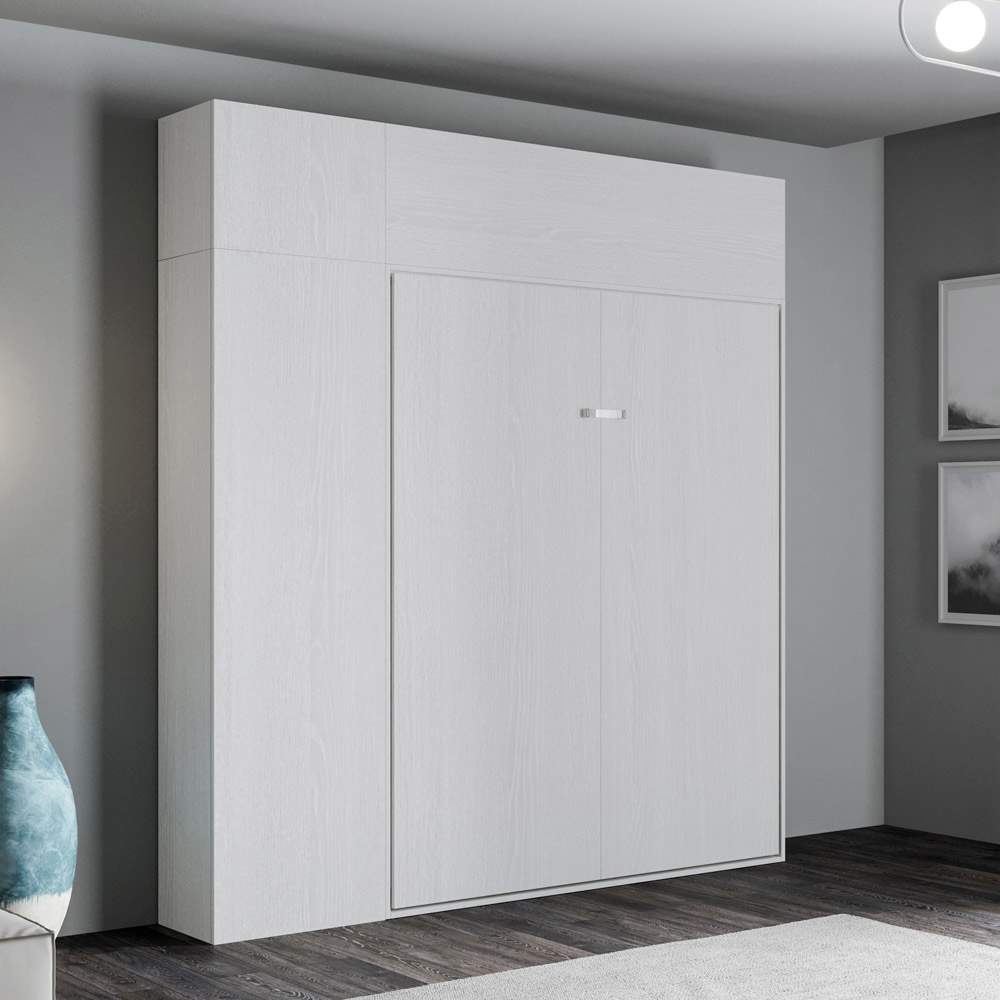 Der Bettrahmen besteht aus 18 mm dicken Melamin-Spanplatten und gewährleistet so Widerstandsfähigkeit und Langlebigkeit. Der Öffnungsmechanismus ist sanft und sicher und verwandelt die Wand mit einer einfachen Geste in ein bequemes Bett.