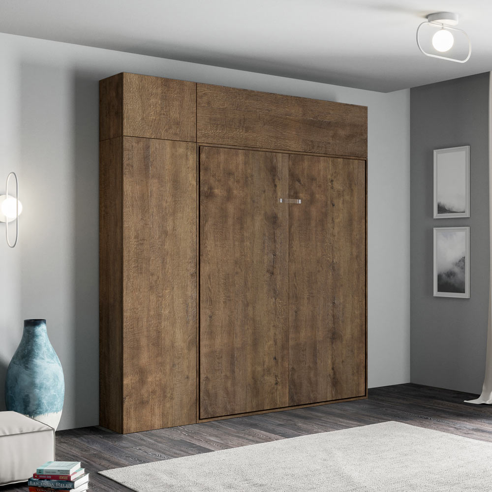 Der Bettrahmen besteht aus 18 mm dicken Melamin-Spanplatten und gewährleistet so Widerstandsfähigkeit und Langlebigkeit. Der Öffnungsmechanismus ist sanft und sicher und verwandelt die Wand mit einer einfachen Geste in ein bequemes Bett.