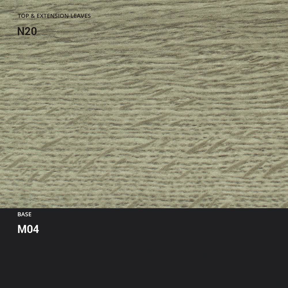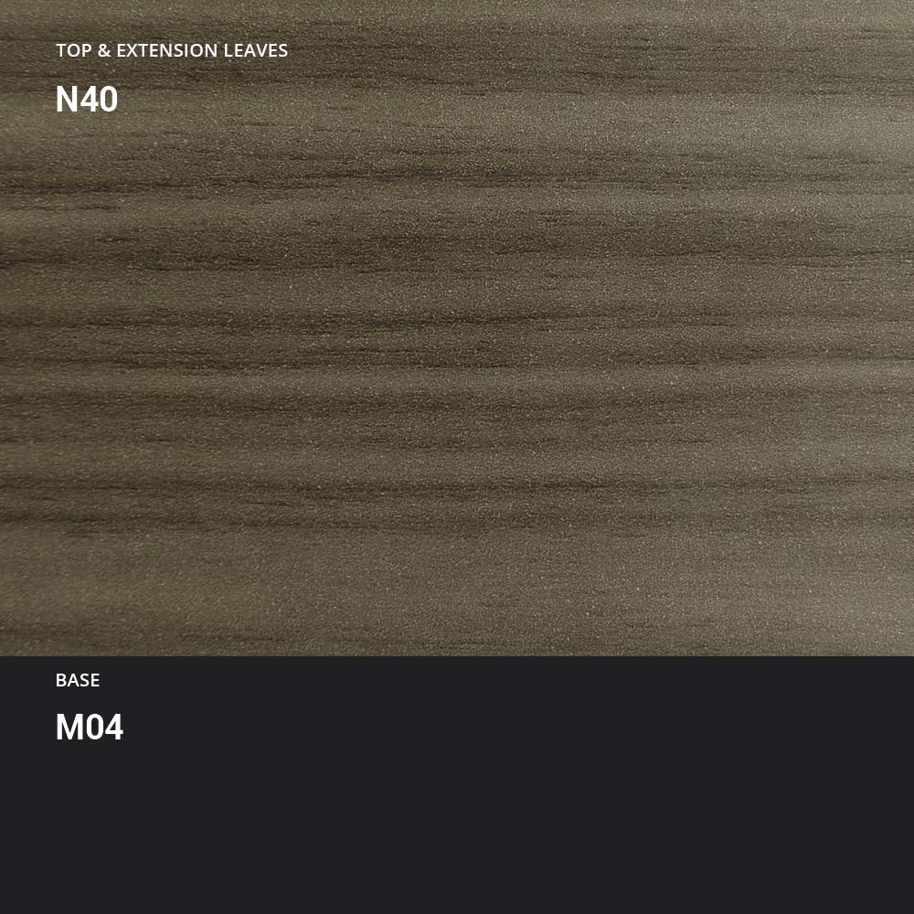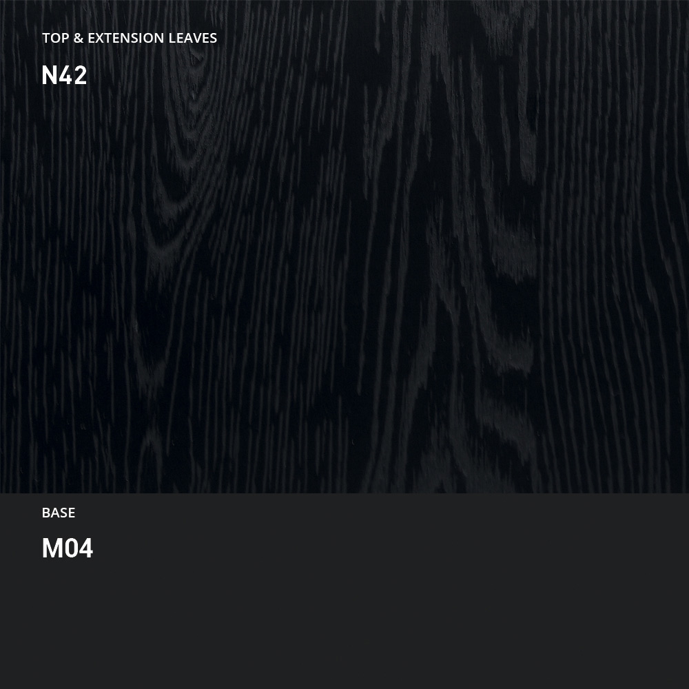 Die Tischplatte ist in Melamin, Lack, Furnier und Mörteloptik in einer Vielzahl von Ausführungen erhältlich.