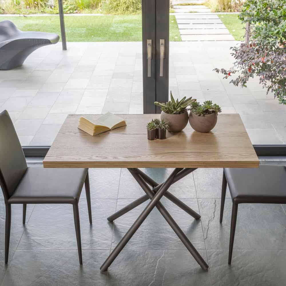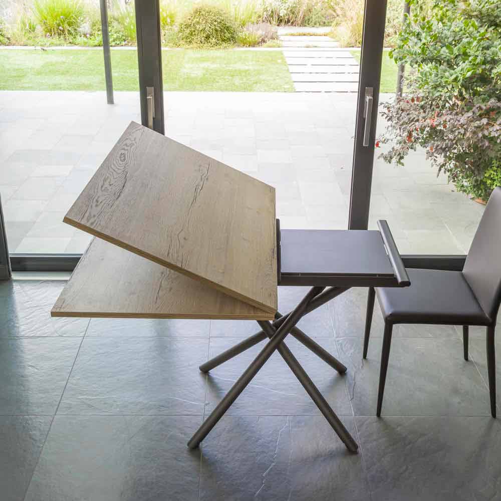 Wandelbarer Couchtisch aus Metall und Holz, hergestellt in Italien.