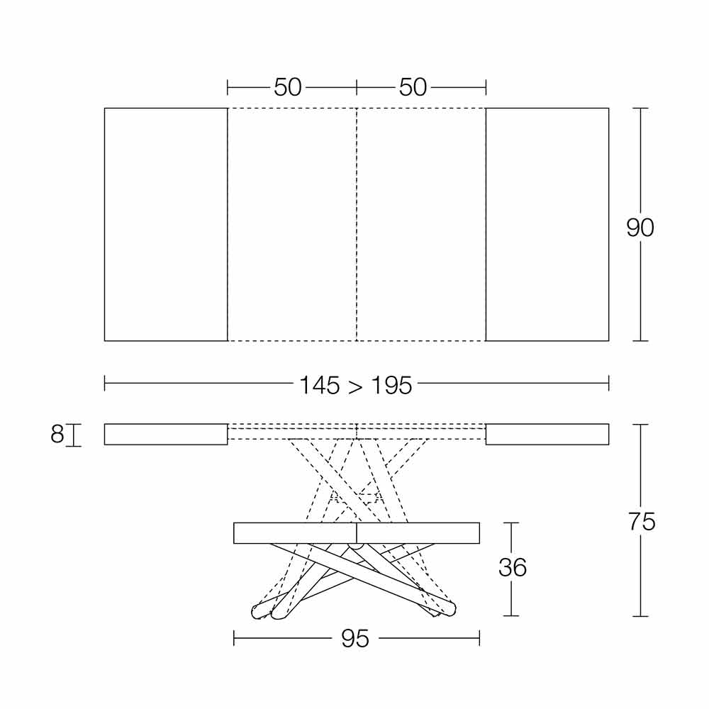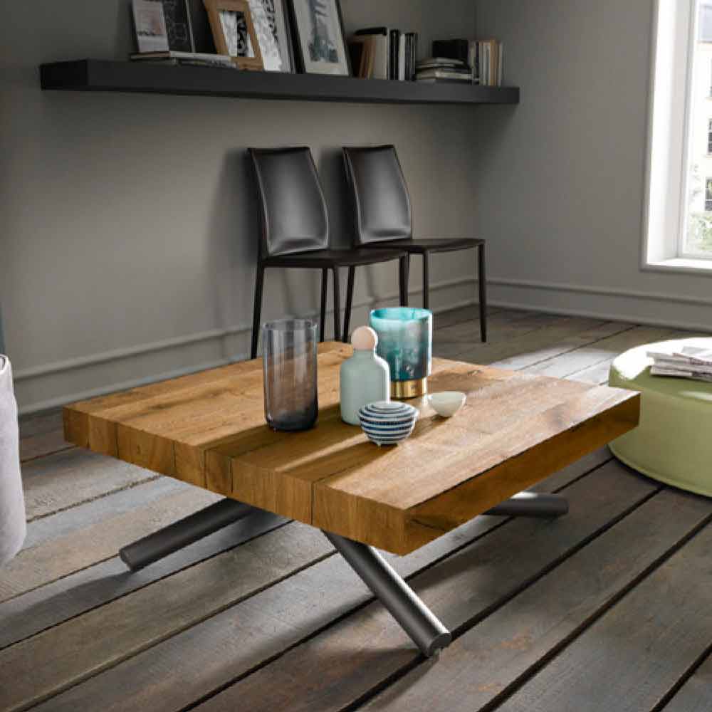 Wandelbarer Couchtisch in modernem Design mit Platte aus Melaminholz und Metallgestell Made in Italy.