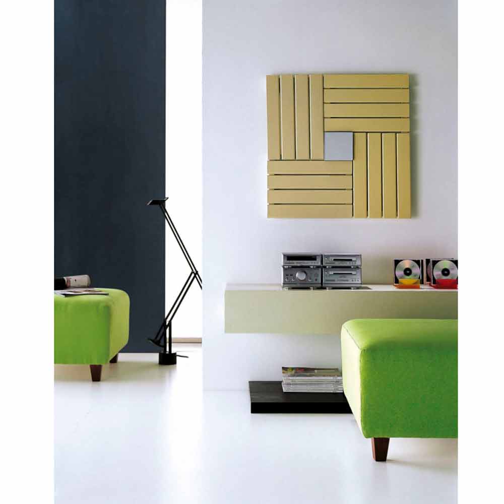 Quadratischer Heizkörper in der hydraulischen Ausführung, komplett mit zentralem farbigem Luftbefeuchter. Quadratische Linien mit zeitgenössischem Touch. Ein Designerheizkörper, der wie ein Kunstwerk an der Wand angebracht wird. Heizkörper und Luftbefeuchter in einer breiten Farbpalette erhältlich. Wählen Sie die Farben, die am besten zu Ihnen passen!