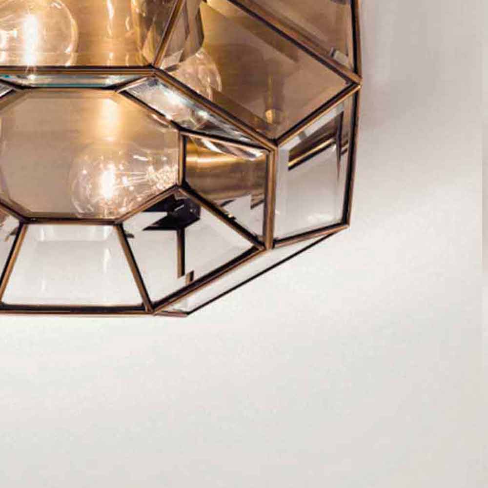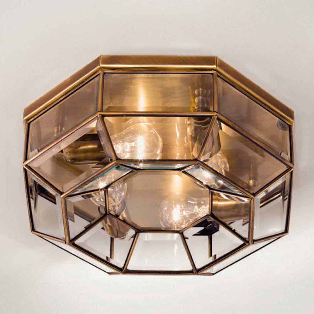 Deckenleuchte mit 4 achteckigen Leuchten aus Messing und Glas in handgefertigtem Design made in Italy.