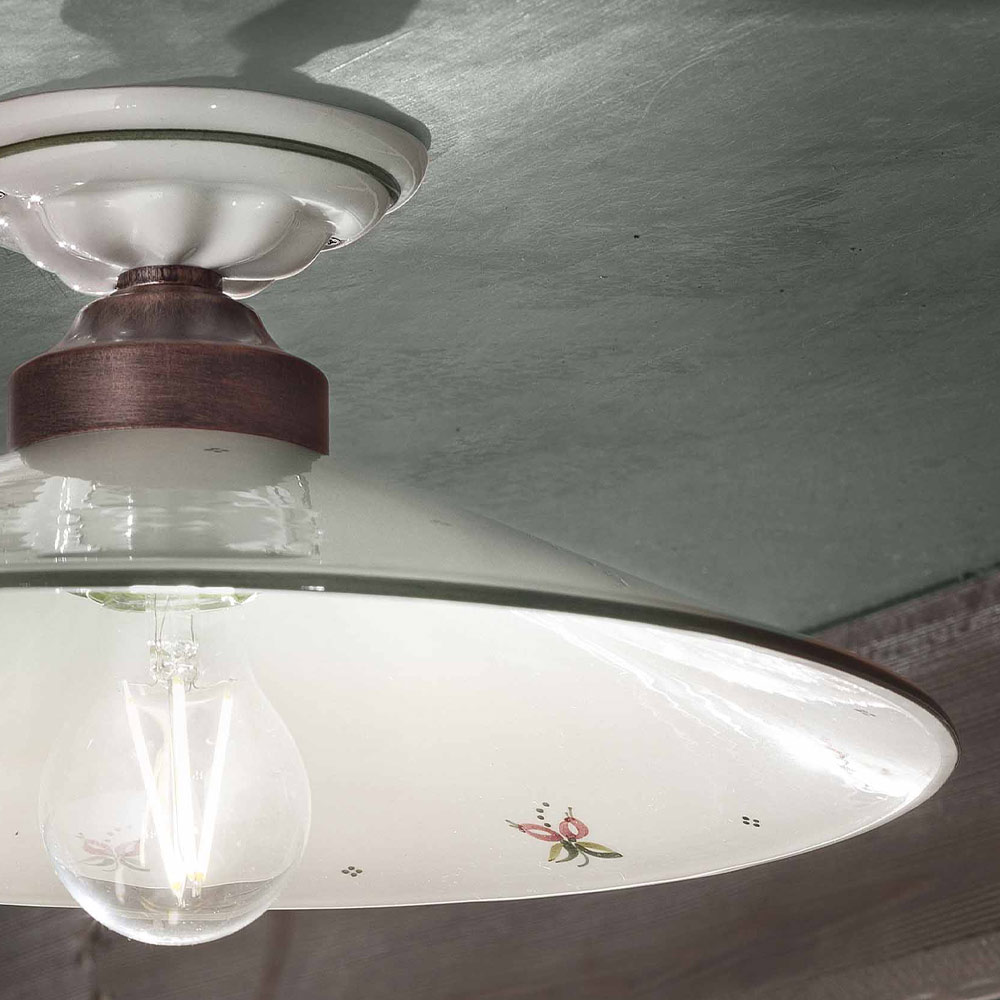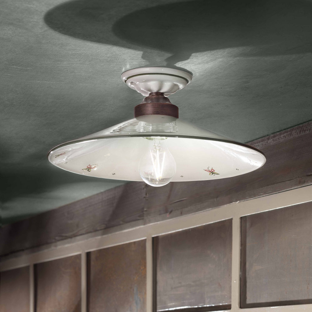 Vintage-Deckenlampe aus Eisen und handbemalter Keramik, 3 Größen, hergestellt in Italien von Ferroluce.