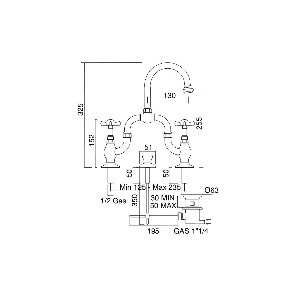 Katerina è eine raffinierte Brückengruppe für Waschbecken 2-3 Löcher mit Ablauf, verstellbarem Achsabstand und gelenkigem Auslauf.