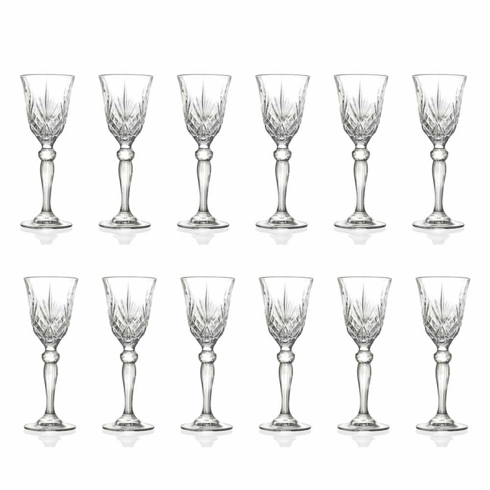 12 Likörgläser im Vintage-Stil aus ökologischem Kristall von hoher Qualität, 100% hergestellt in Italien.