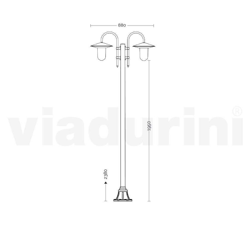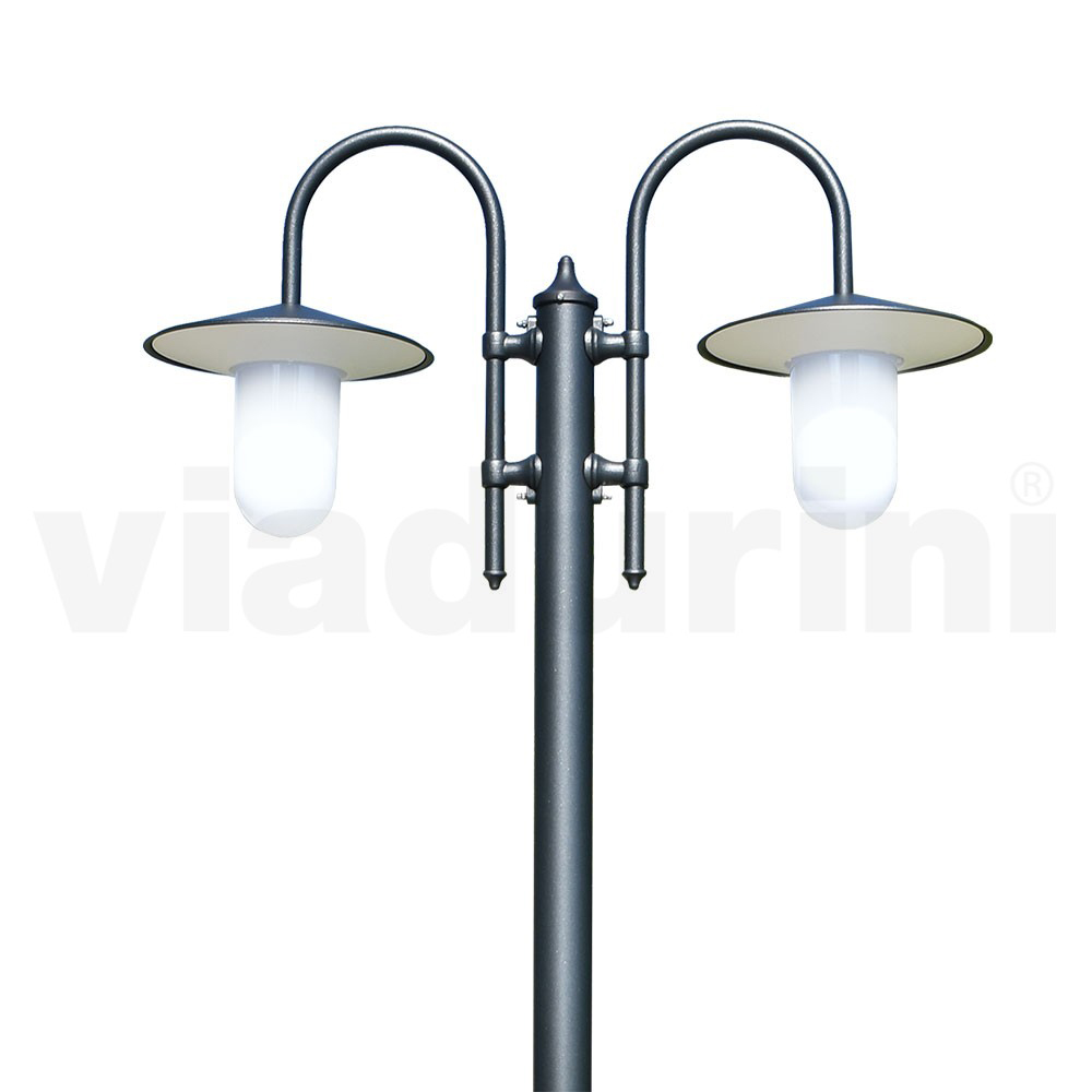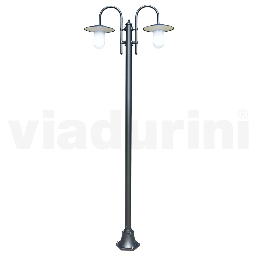 2-flammige Gartenlampe im Vintage-Stil mit Aluminiumstruktur, Made in Italy.