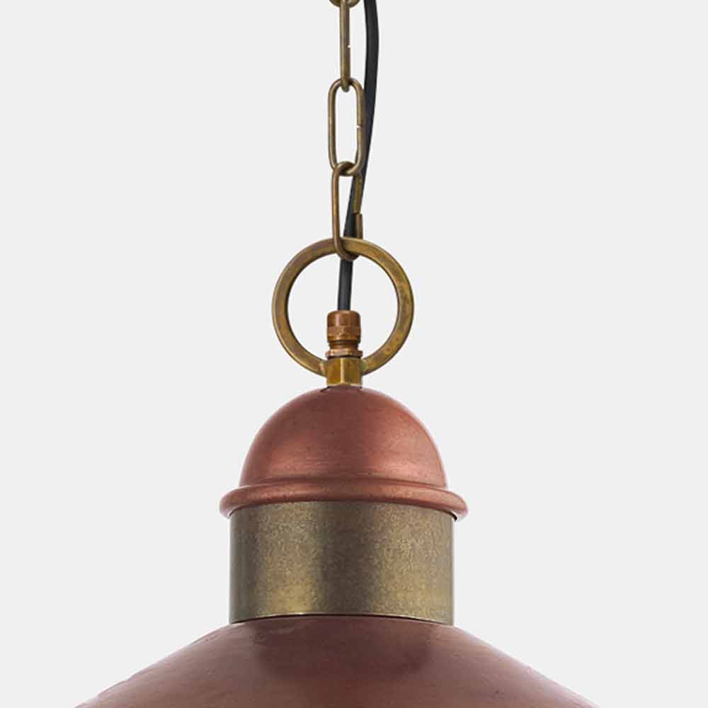 Vintage Pendelleuchte aus Messing und antikem Kupfer mit Kette, hergestellt in Italien.