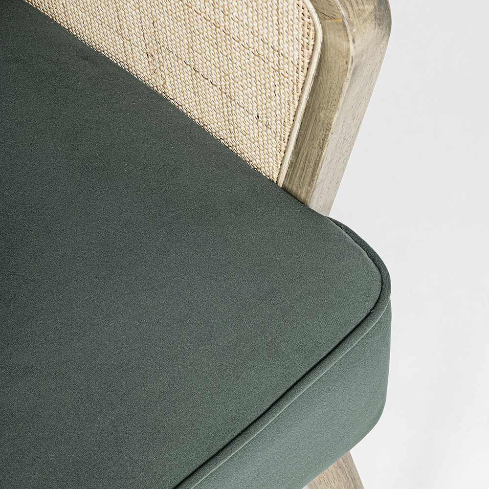 Vintage Holzsessel mit Rattan und Polyester Armlehnen - Ludovica