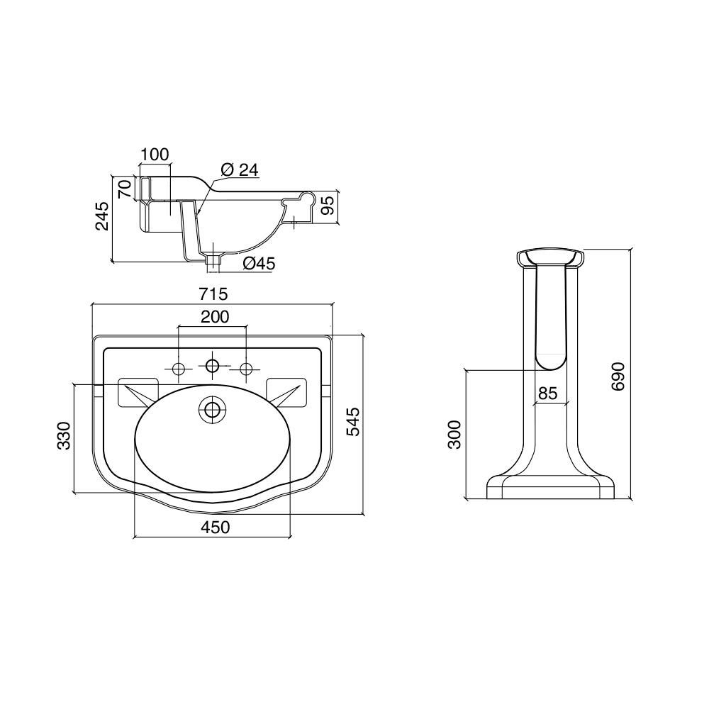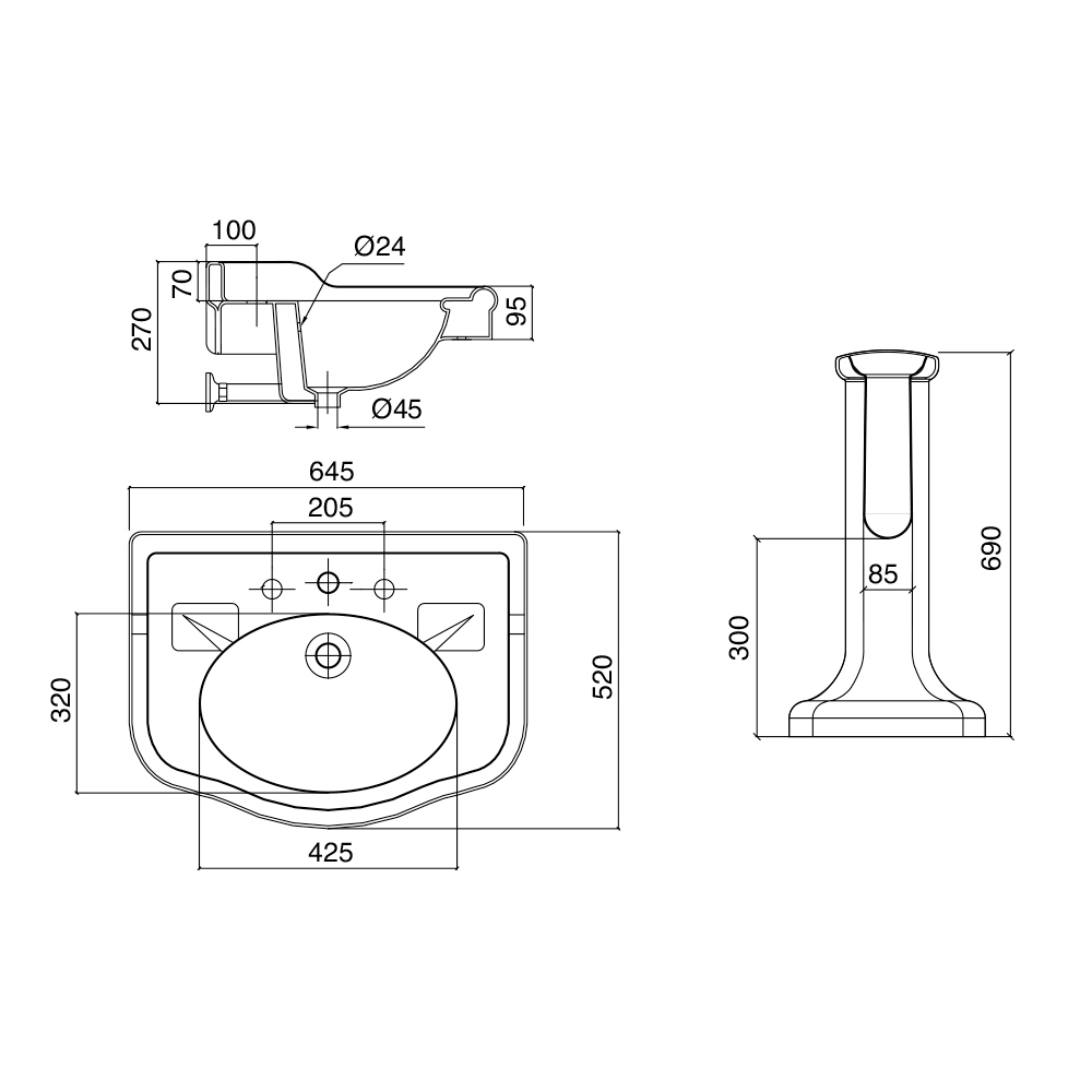 - B 64,5 x T 52 x H 69 cm mit Spritzschutz und Spritzschutzrand 1-3 Armaturenlöcher - B 645 mm;