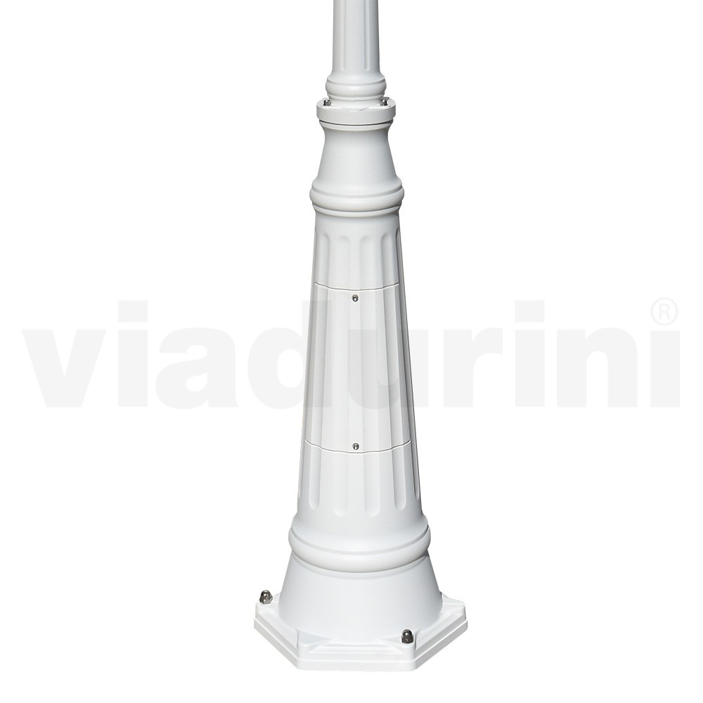3-flammige Gartenlampe, hergestellt in Italien, mit Struktur aus geprägtem weißem Aluminiumdruckguss und Diffusor aus natürlichem Messing (Durchmesser 260 mm). Komplett mit Edelstahlschrauben und Silikondichtung für besseren Schutz. Aus der perfekten Kombination aus Funktionalität und Eleganz entsteht ein einzigartiges Einrichtungsaccessoire, das für hochwertige Beleuchtung sorgt und gleichzeitig ein dekoratives Element mit traditioneller Persönlichkeit bietet, das dank seiner raffinierten Eigenschaften und seines imposanten Charakters die umgebende Atmosphäre vervollständigen kann. Ideal für Außenbereiche wie Gärten, Innenhöfe, Alleen und Gehwege, aber auch für gewerbliche Räume wie Bars und Restaurants.