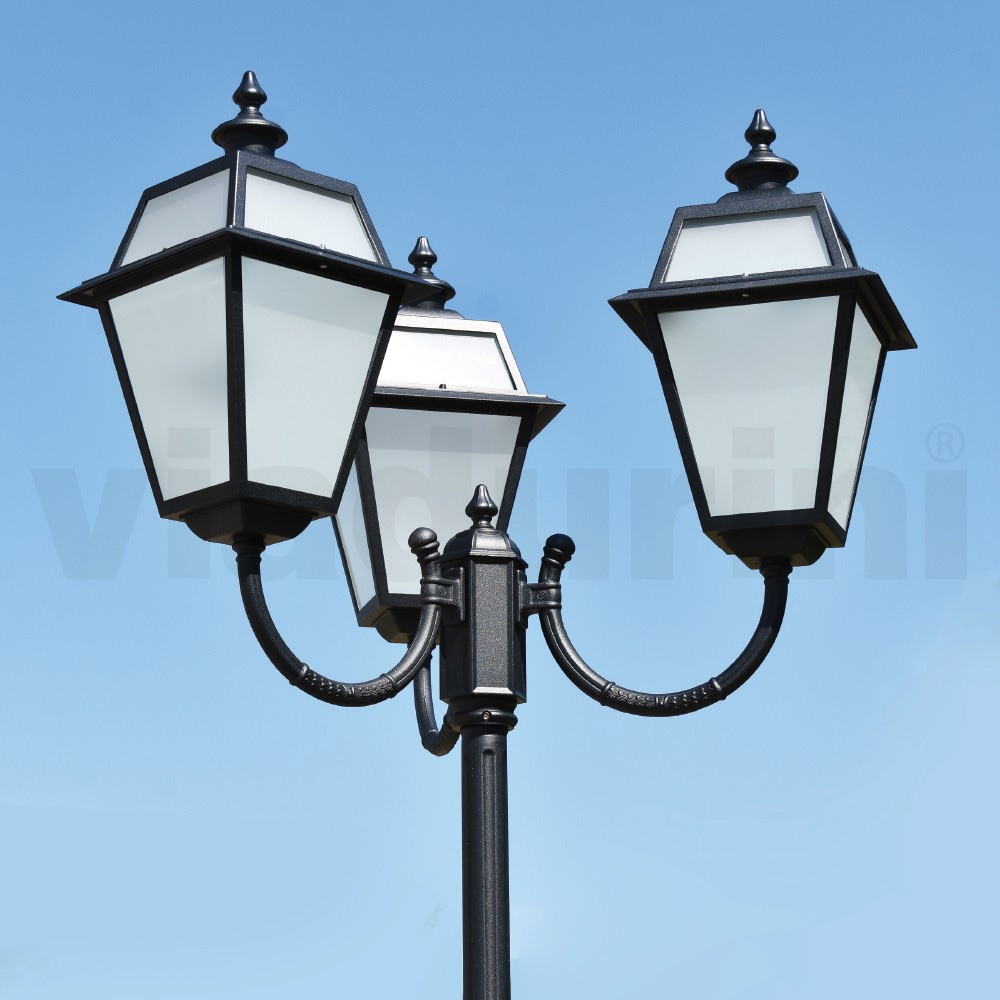 Vintage-Laternenpfahl mit 3 Lichtern aus Aluminium und Glas, hergestellt in Italien – Vivian