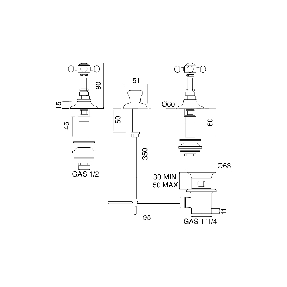 . Elisea è eine sensationelle ba3-Loch Bidetarmatur mit Spülung und internem Auslauf, aus Messing.