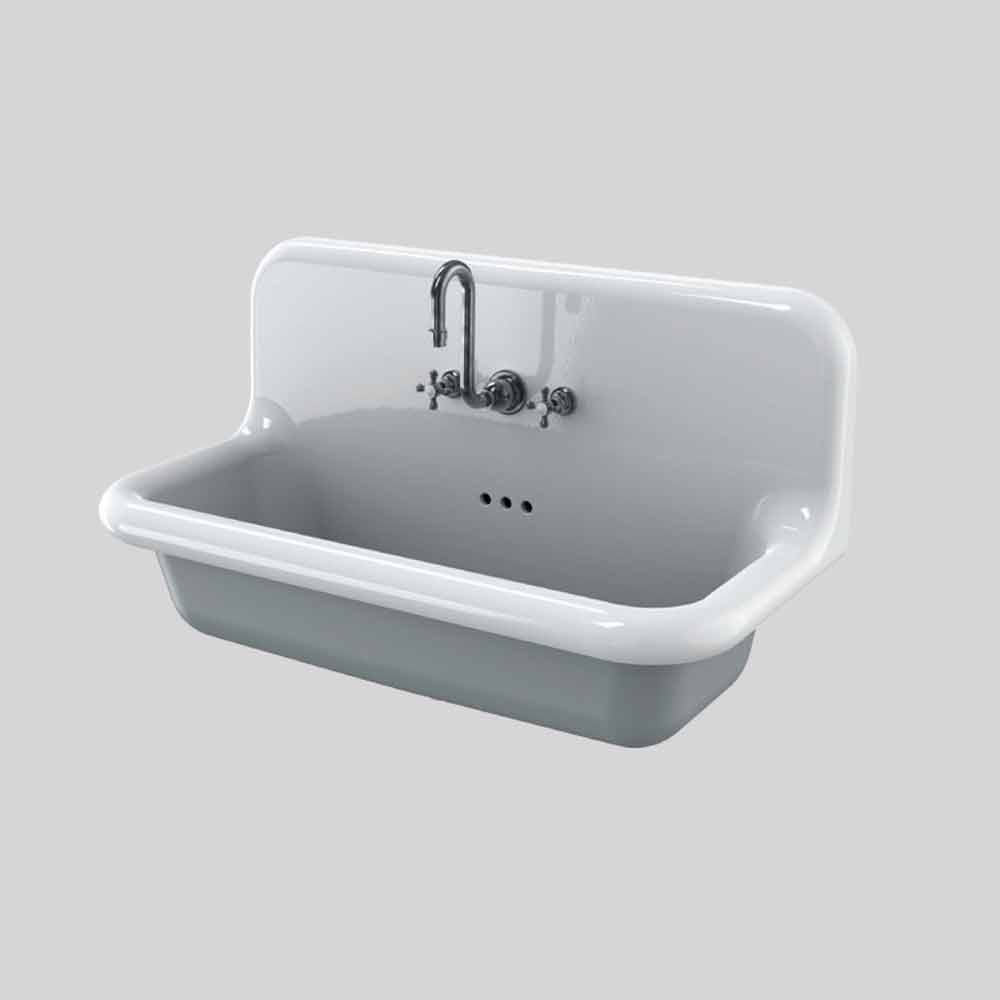 Wandmontiertes rechteckiges Waschbecken aus Keramik im Vintage-Stil von Henry
