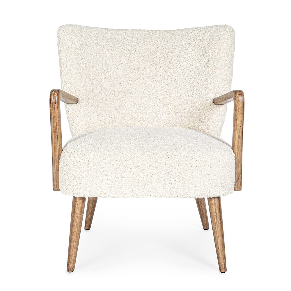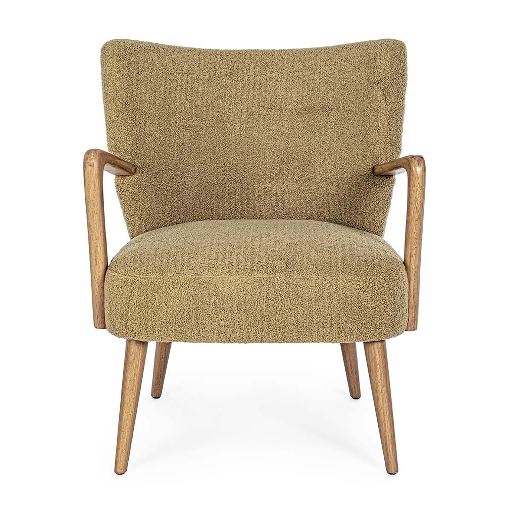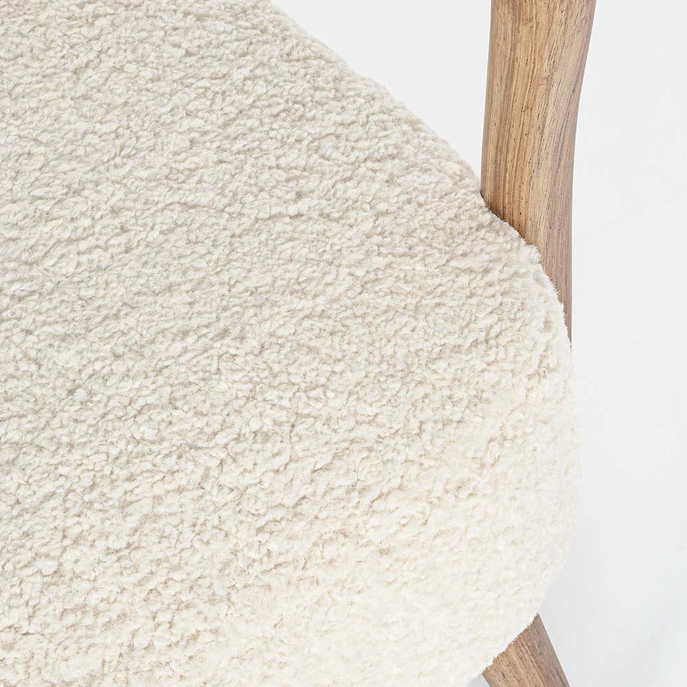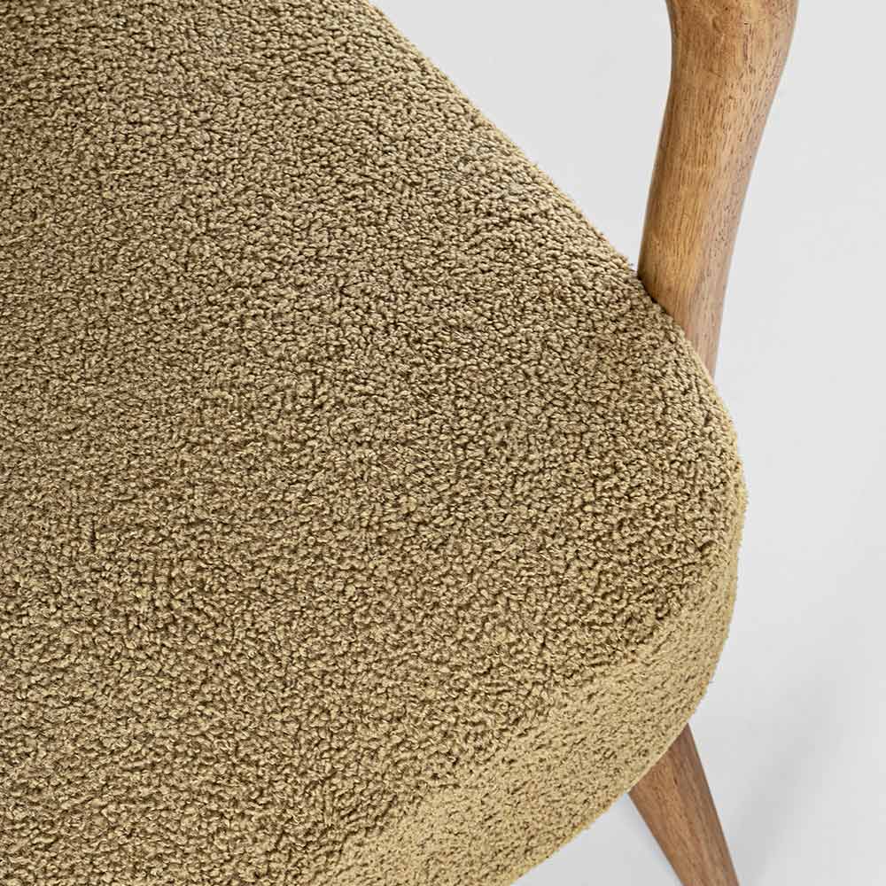 Vintage Rubberwood Sessel und Sitzfläche und Armlehnen in Wolloptik - Patrizia