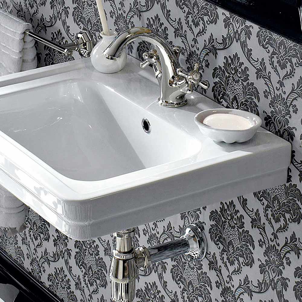 Weißes Keramik-Wandwaschbecken im klassischen Stil, hergestellt in Italien, Marwa.