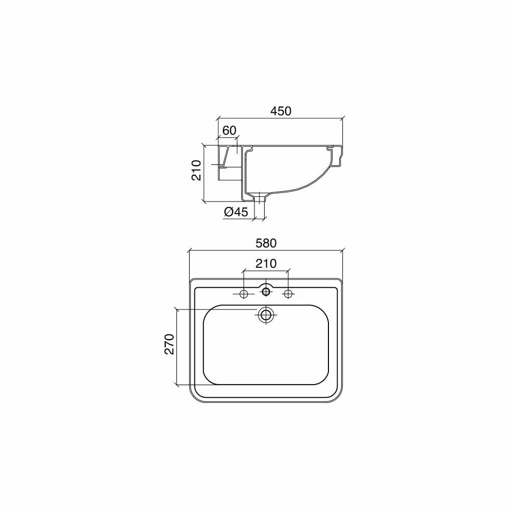 1 oder 3 Hahnlöchern (bei Bestellung anzugeben), L 580 mm.