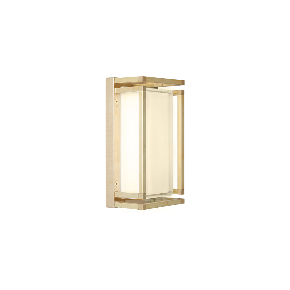 Diese schlichte und elegante, handgefertigte Wandleuchte ist eine raffinierte Beleuchtungslösung, die moderne Wände und zeitgenössische Räume perfekt in Szene setzt. Die Struktur aus Messingdruckguss in Kombination mit einem rechteckigen Diffusor aus Opalglas erzeugt ein weiches, gleichmäßiges Licht – ideal für eine einladende und zugleich funktionale Beleuchtung.