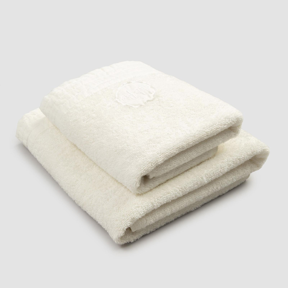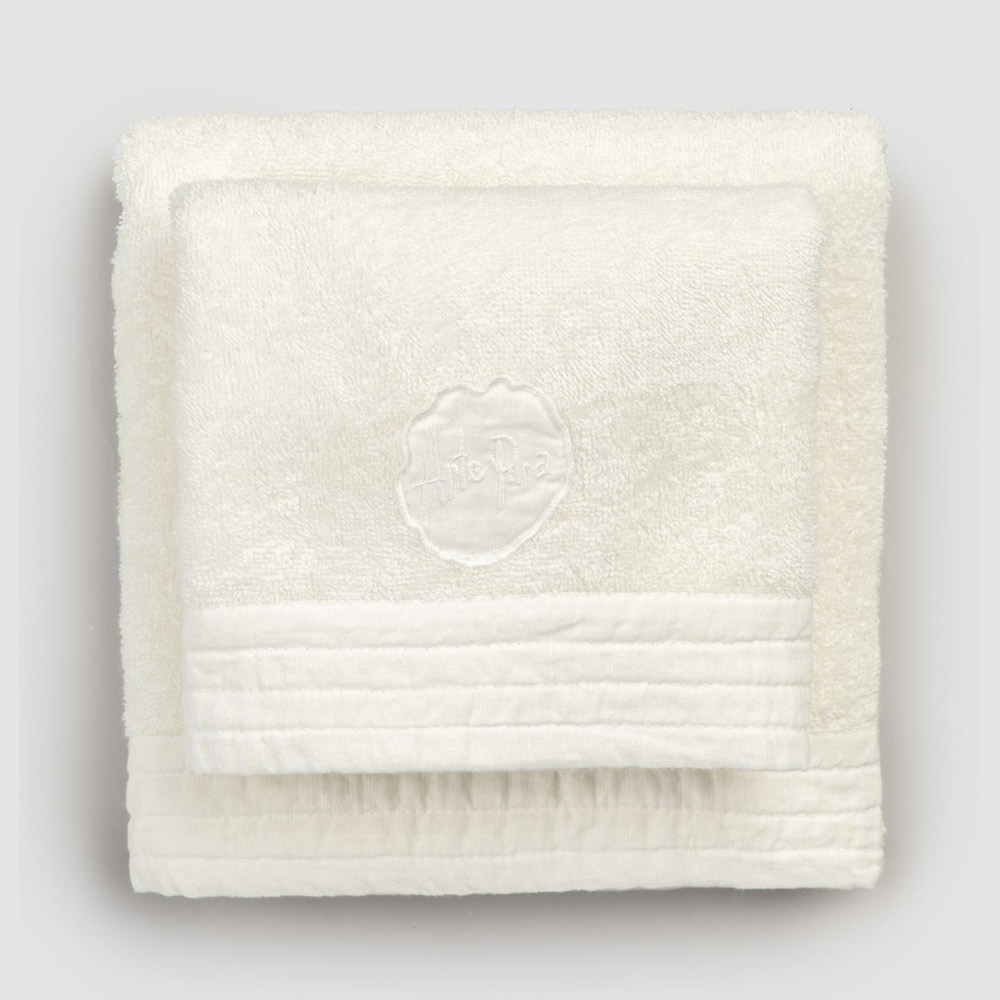 Paar Gesichts- und Gästetücher aus Baumwollfrottee und Leinen, hochwertig hergestellt in Italien.