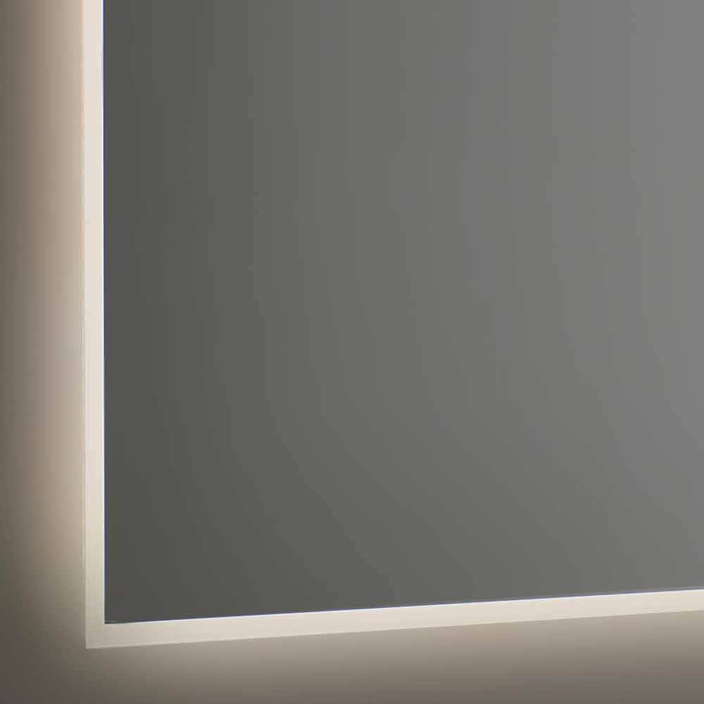 Wandspiegel aus 4 mm dickem Glas mit Hintergrundbeleuchtung und LEDs mit 1 cm Sandstrahl .