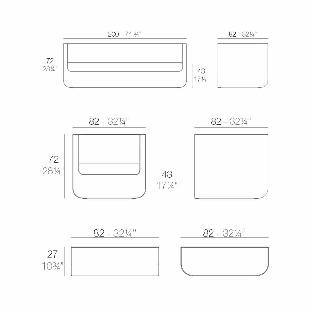 - 1 Sofa L200 x P82 x H72 cm, mit weißen Kissen enthalten;